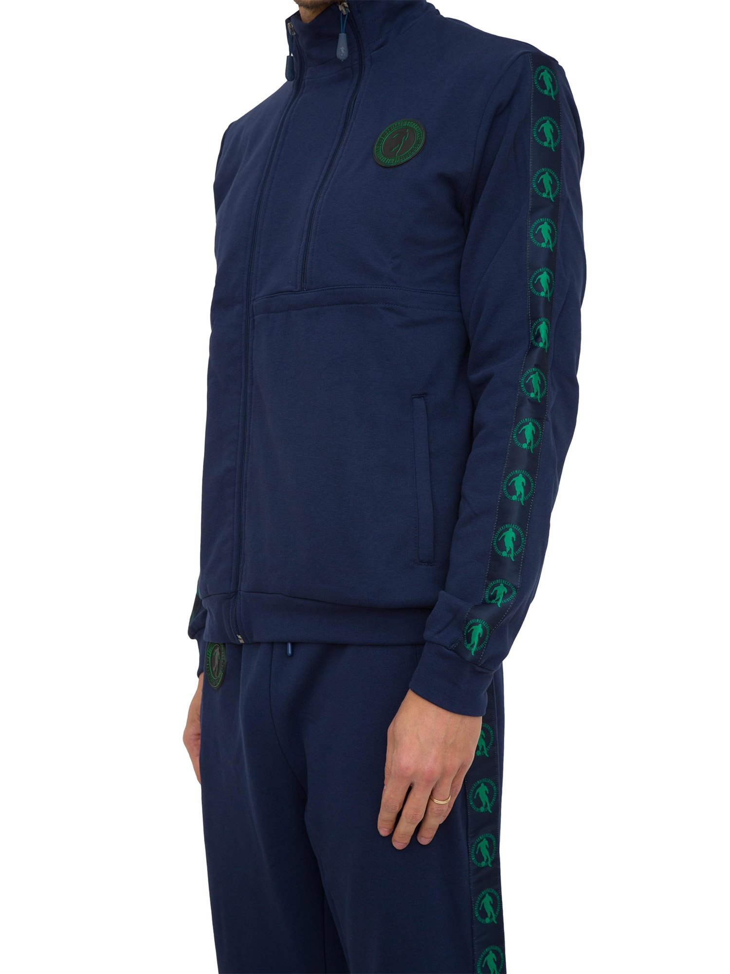 Brand: BIKKEMBERGSFelpa da uomo in cotone stretch è connotata dalla doppia chiusura a zip sul petto. La felpa è dotata di bordi a costine, colletto avvolgente e due tasche a filetto. Sulle maniche è posizionata l'immagine dell'iconico giocatore di calcio Bikkembergs.