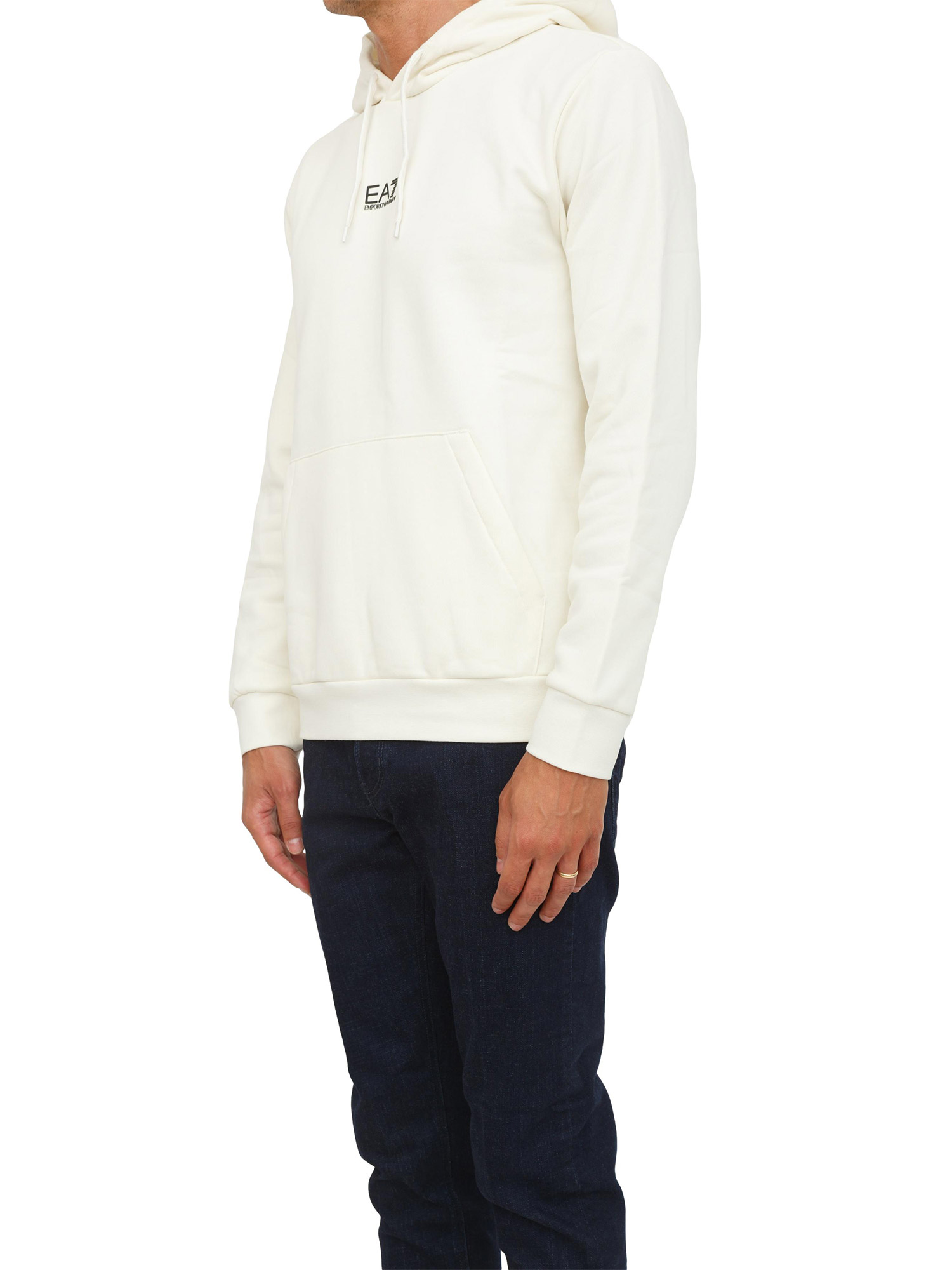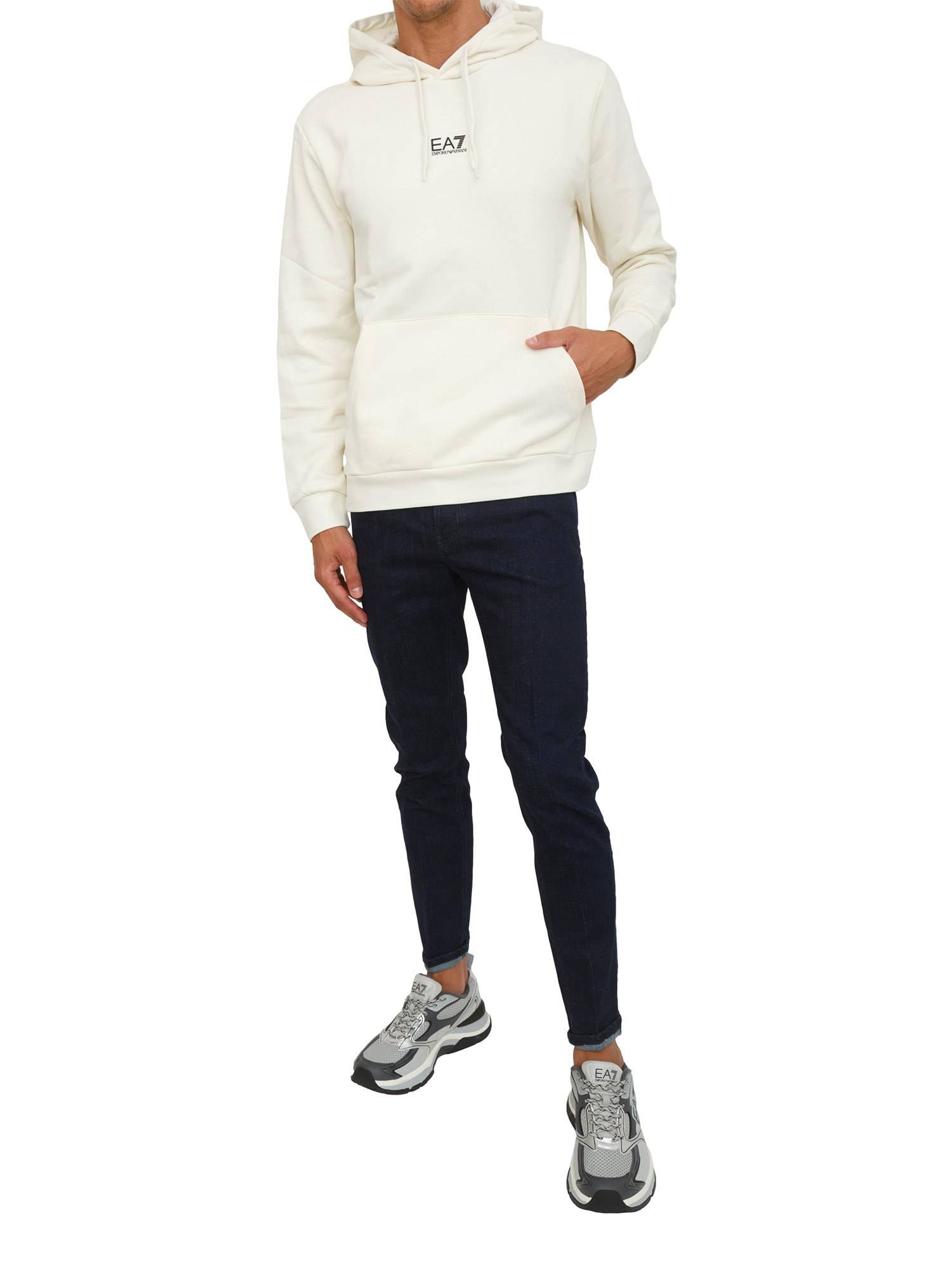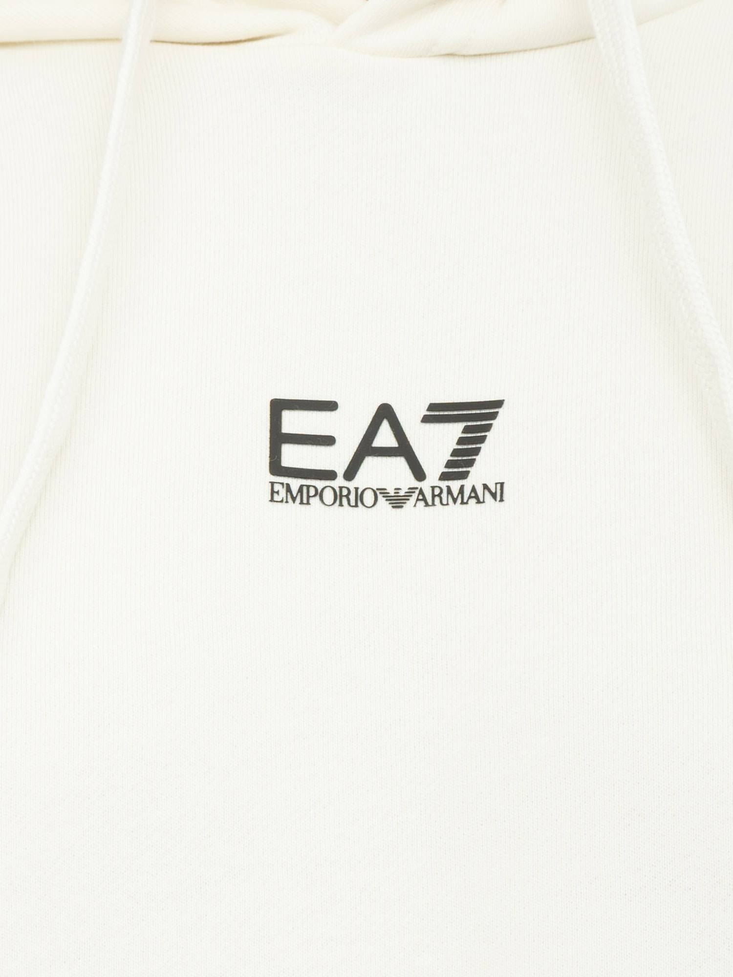 EA7 EMPORIO ARMANI Felpa avorio EA7 con cappuccio Core Identity in misto cotone