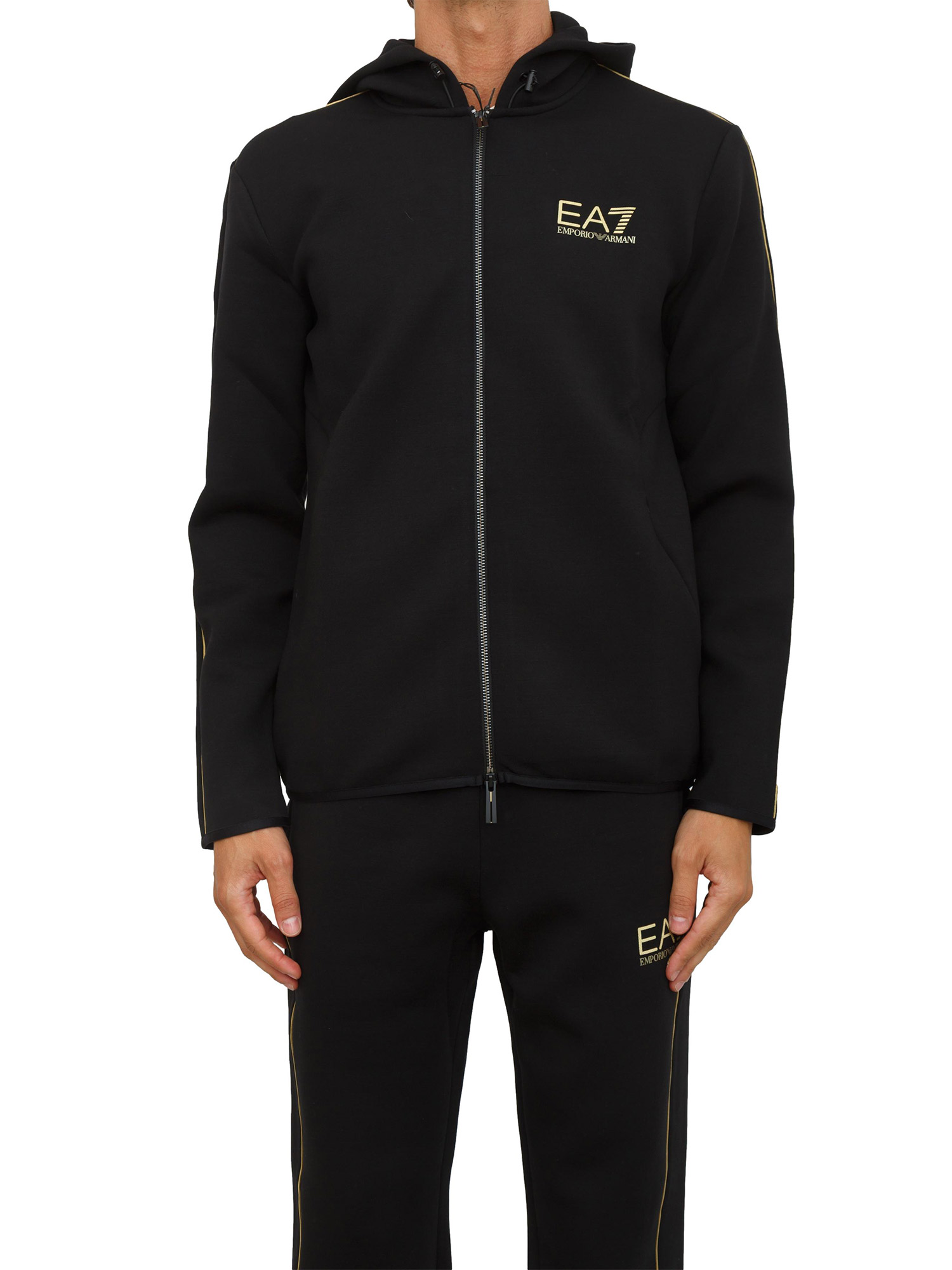 EA7 EMPORIO ARMANI Felpa con cappuccio nero EA7 Gold Label in misto viscosa