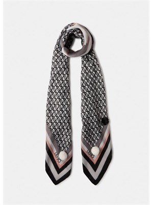 Brand: LIU JOFoulard Liu Jo realizzato in caldo tessuto con stampa logo patchwork con motivo a righe e pompon applicati. Misure: 120 x 120 cm.