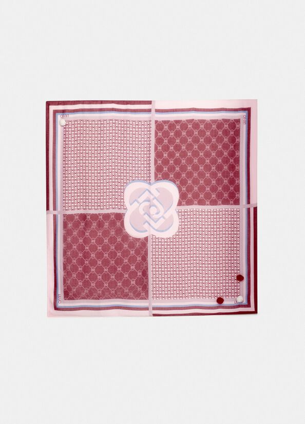 Foulard Liu Jo bordeaux con stampa logo patchwork e pompon