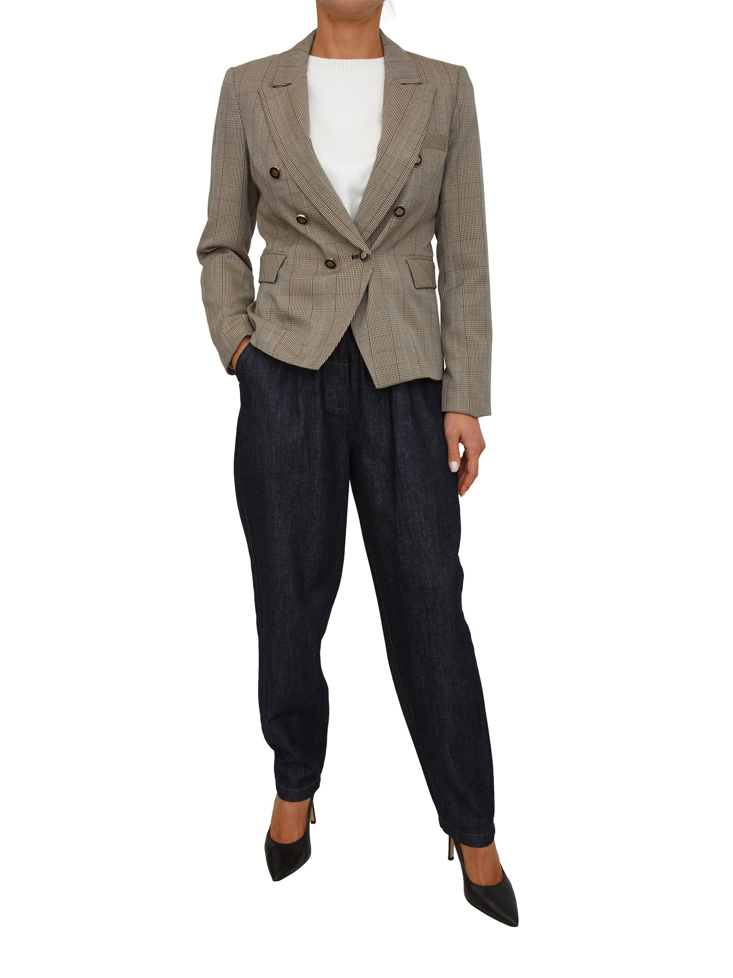 Giacca doppiopetto Ilyassa Kocca in misto viscosa tartan beige