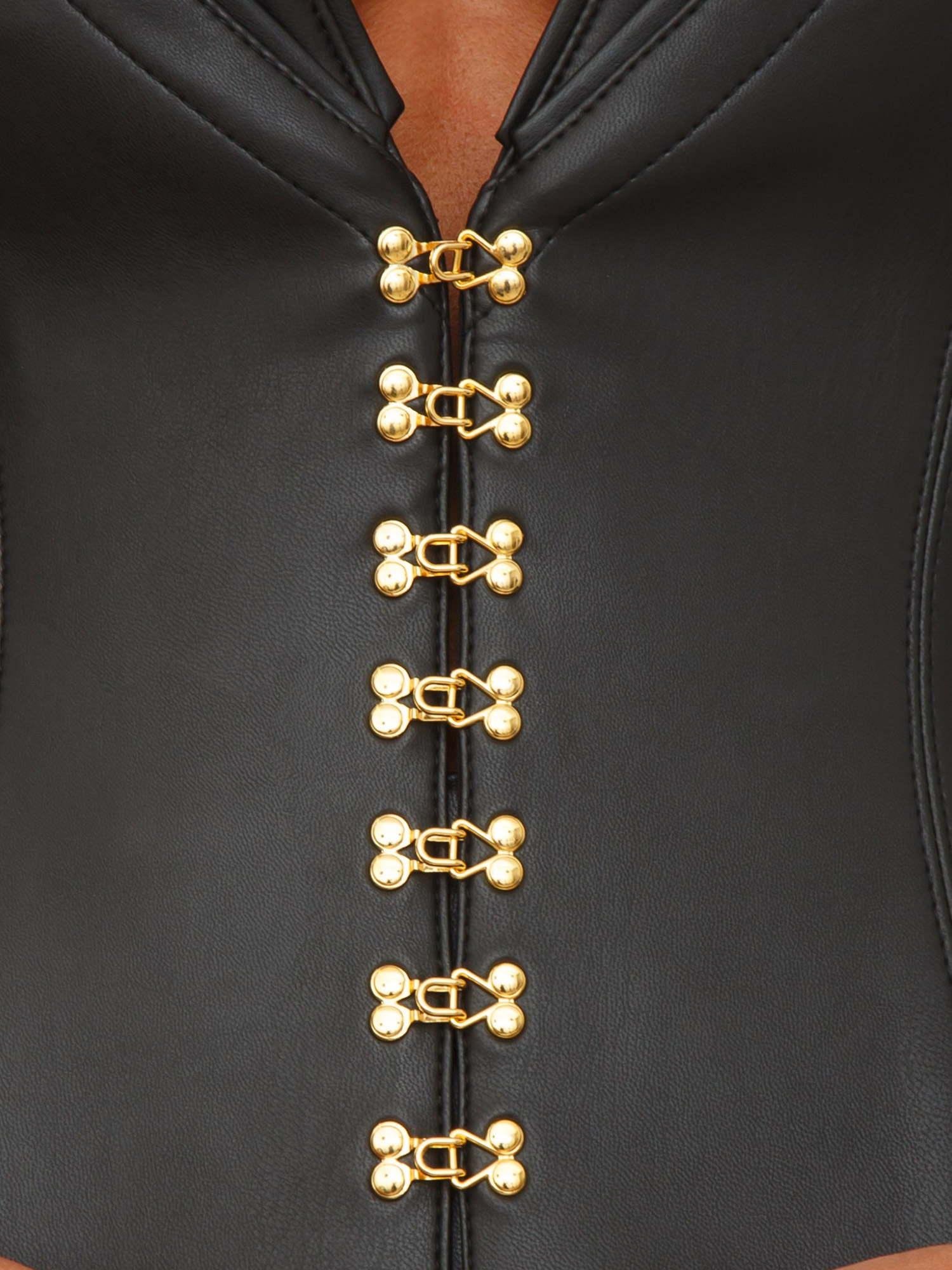 Giacca Elisabetta Franchi in ecopelle nera con ganci gioiello