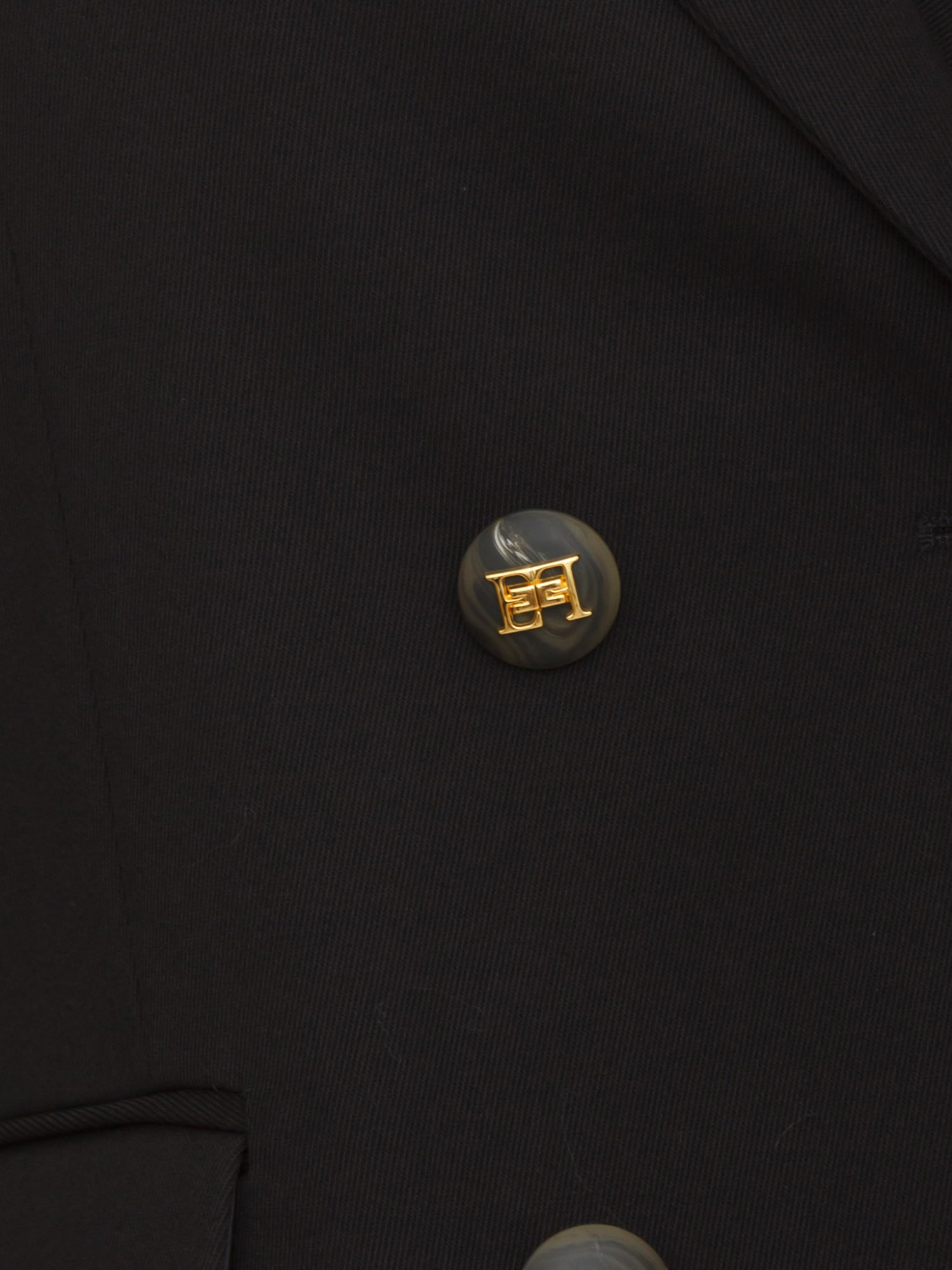 Giacca Elisabetta Franchi in gabardina di cotone nera con taschino e bottoni logo