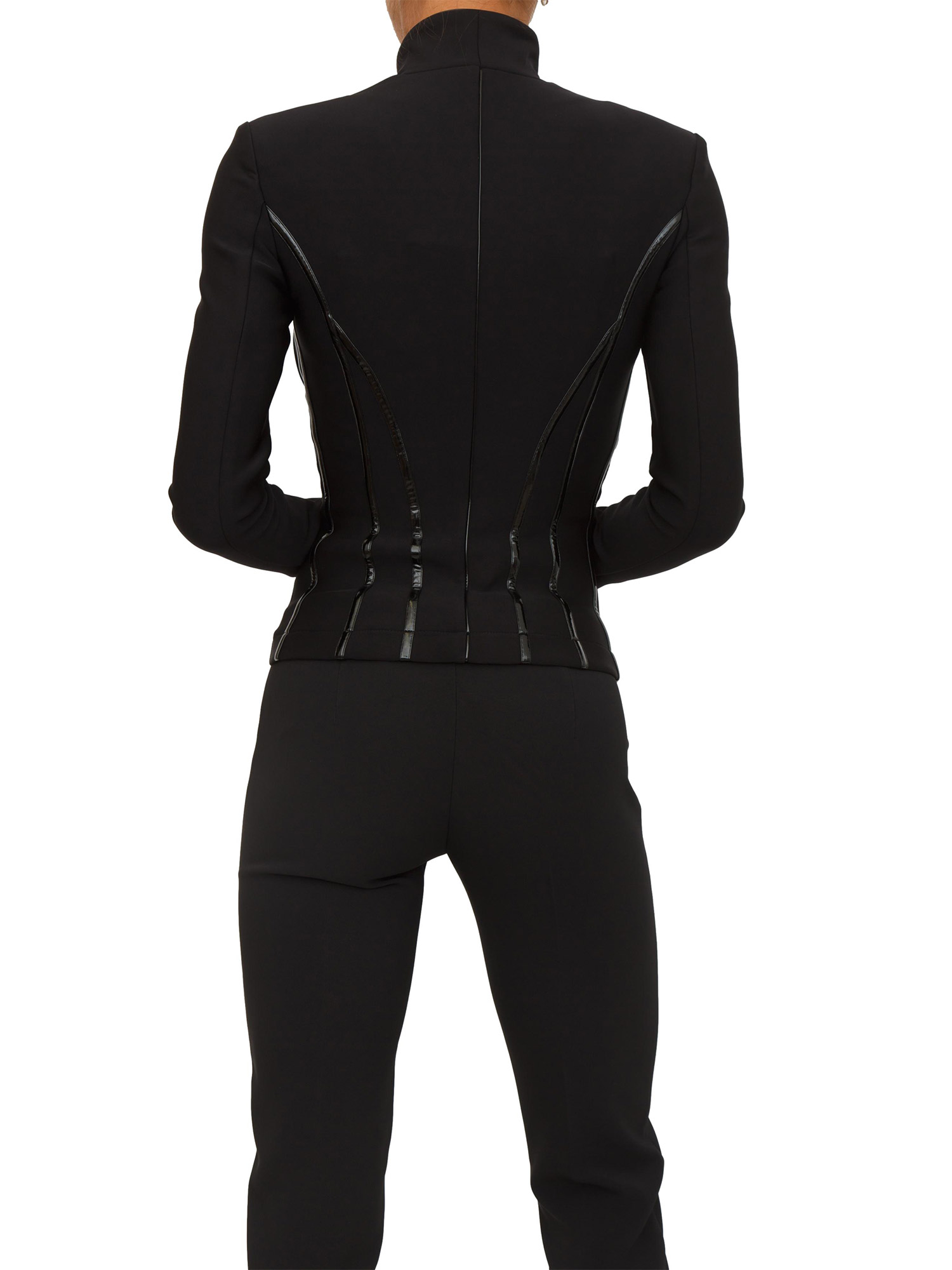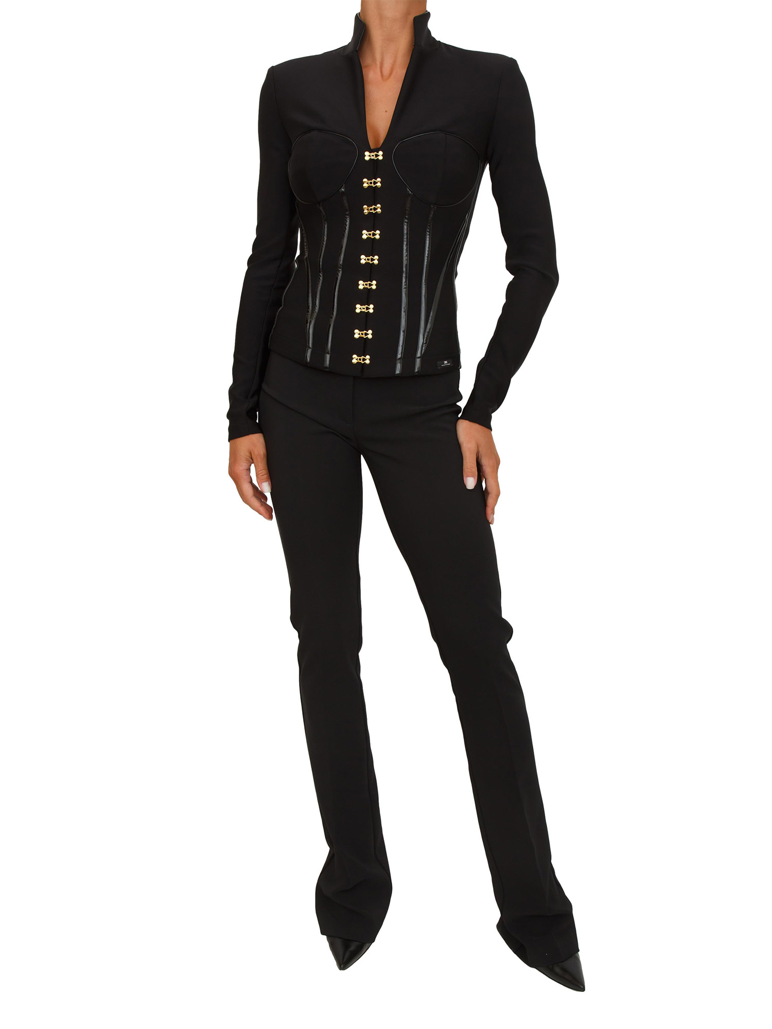 Giacca Elisabetta Franchi in neoprene nero con dettagli corsetto