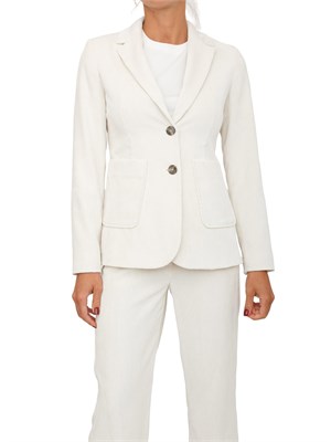 Brand: EMME MARELLAIl fascino del velluto, il tocco seventy della lavorazione a coste: il nuovo blazer Emme Marella con tasche applicate rimane in equilibrio perfetto tra accenti casual e note urbane. Da completare con i pants coordinati in un total look sorprendente. La modella è alta 1.72 e indossa la taglia 40.