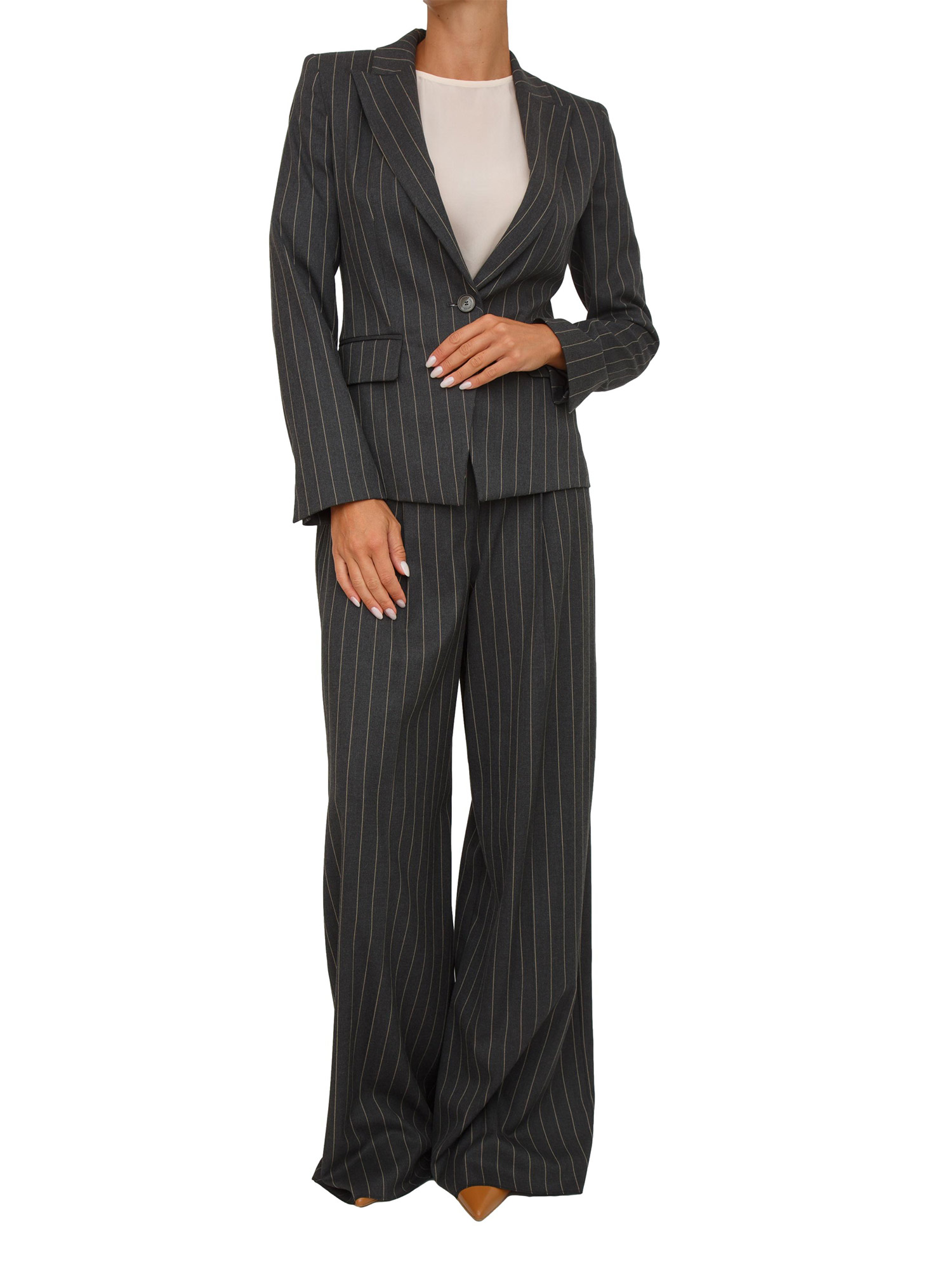 Giacca monopetto Emme Marella in tessuto grigio a righe con collo rever