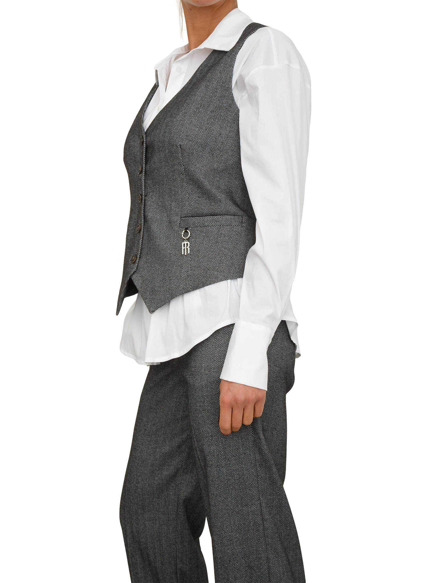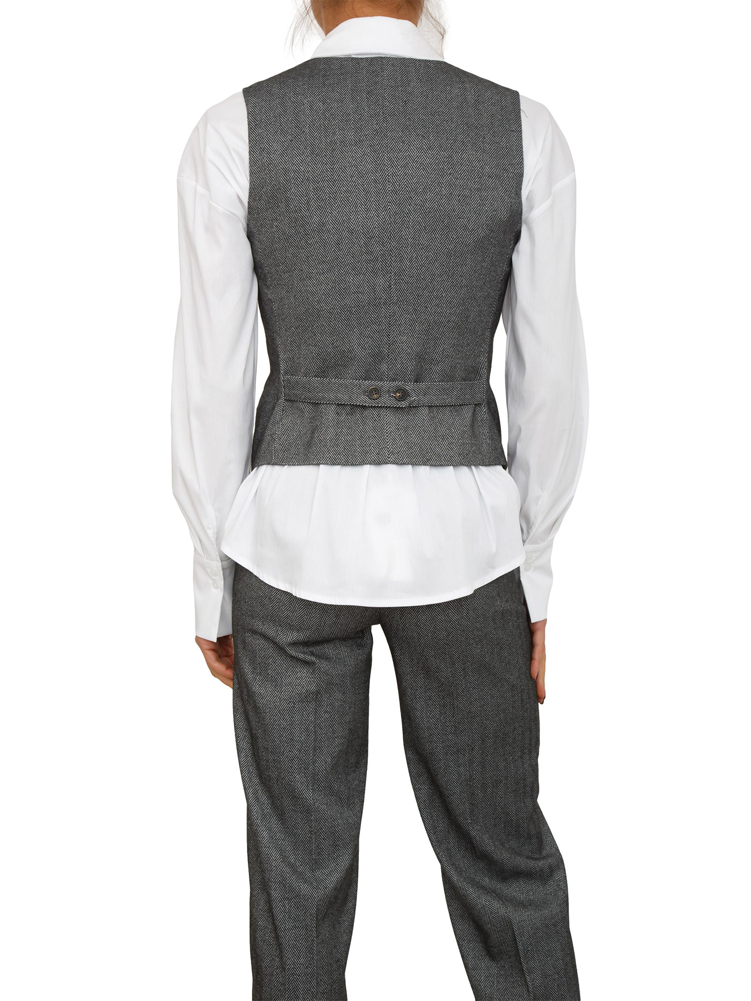 Gilet donna Fracomina in tessuto a spina di pesce grigio
