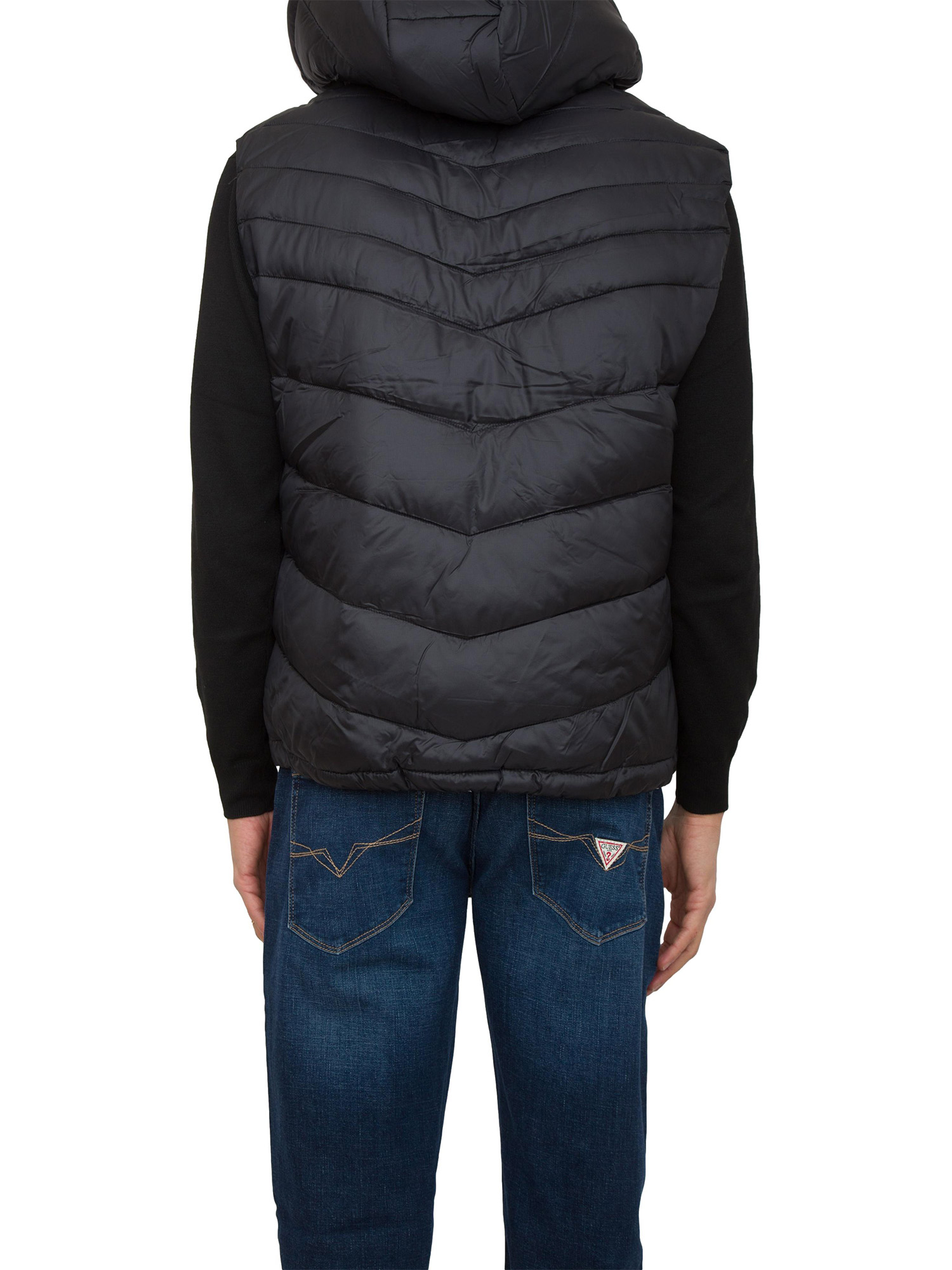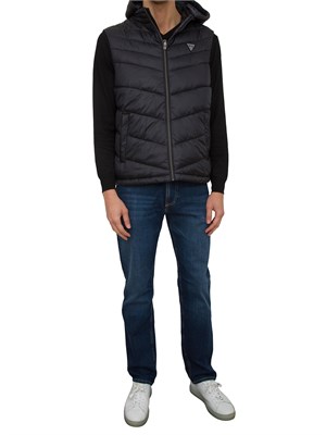 Brand: GUESS JEANSGilet Guess realizzato in materiale resistente a tinta unita, leggermente isolato. Impermeabile e antivento con chiusura a zip, cappuccio rimovibile e taglio dritto. Perfetto per un look pratico e moderno in ogni situazione.