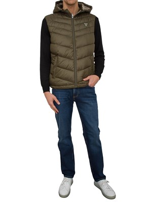 Brand: GUESS JEANSGilet Guess realizzato in materiale resistente a tinta unita, leggermente isolato. Impermeabile e antivento con chiusura a zip, cappuccio rimovibile e taglio dritto. Perfetto per un look pratico e moderno in ogni situazione.