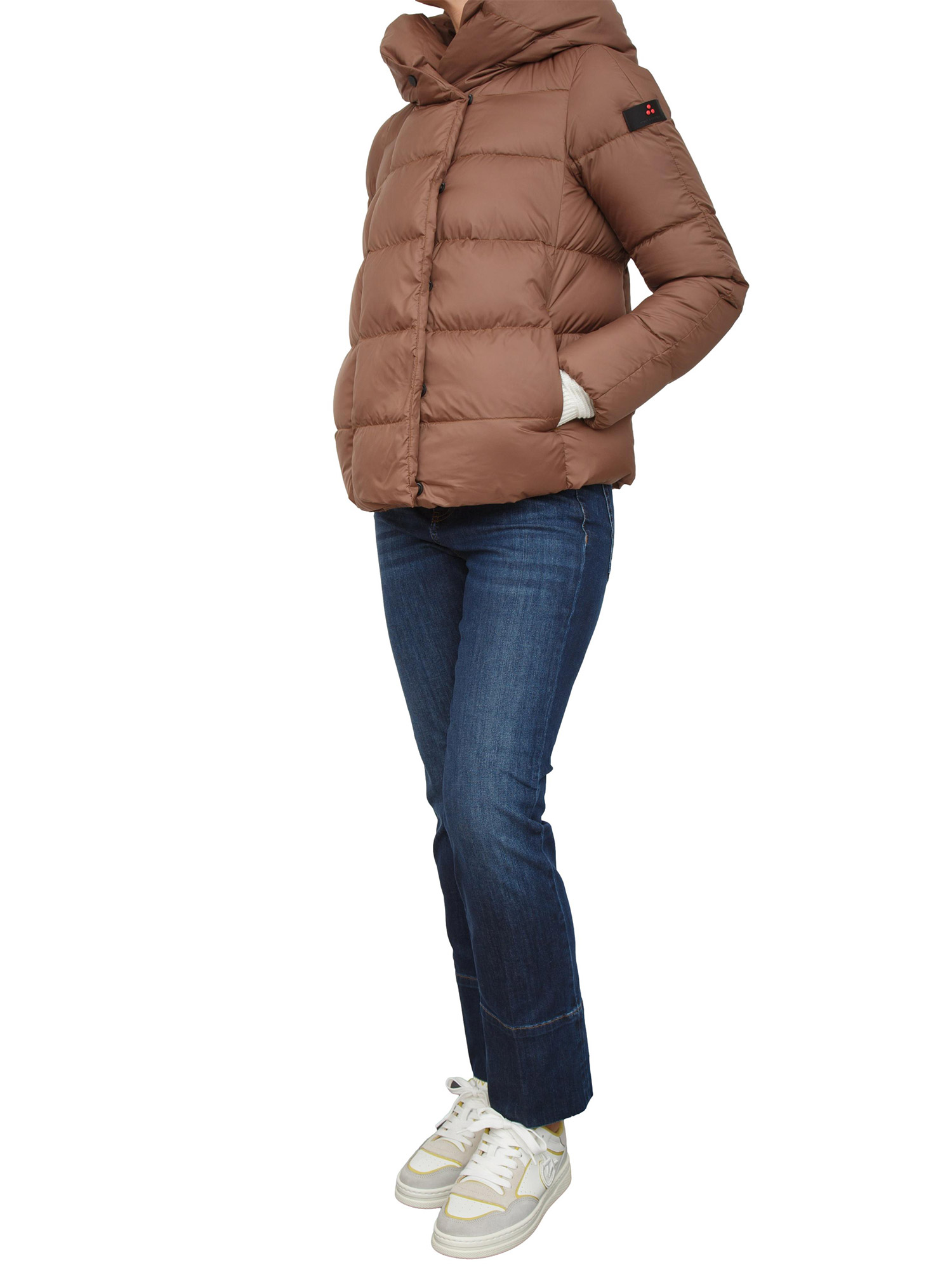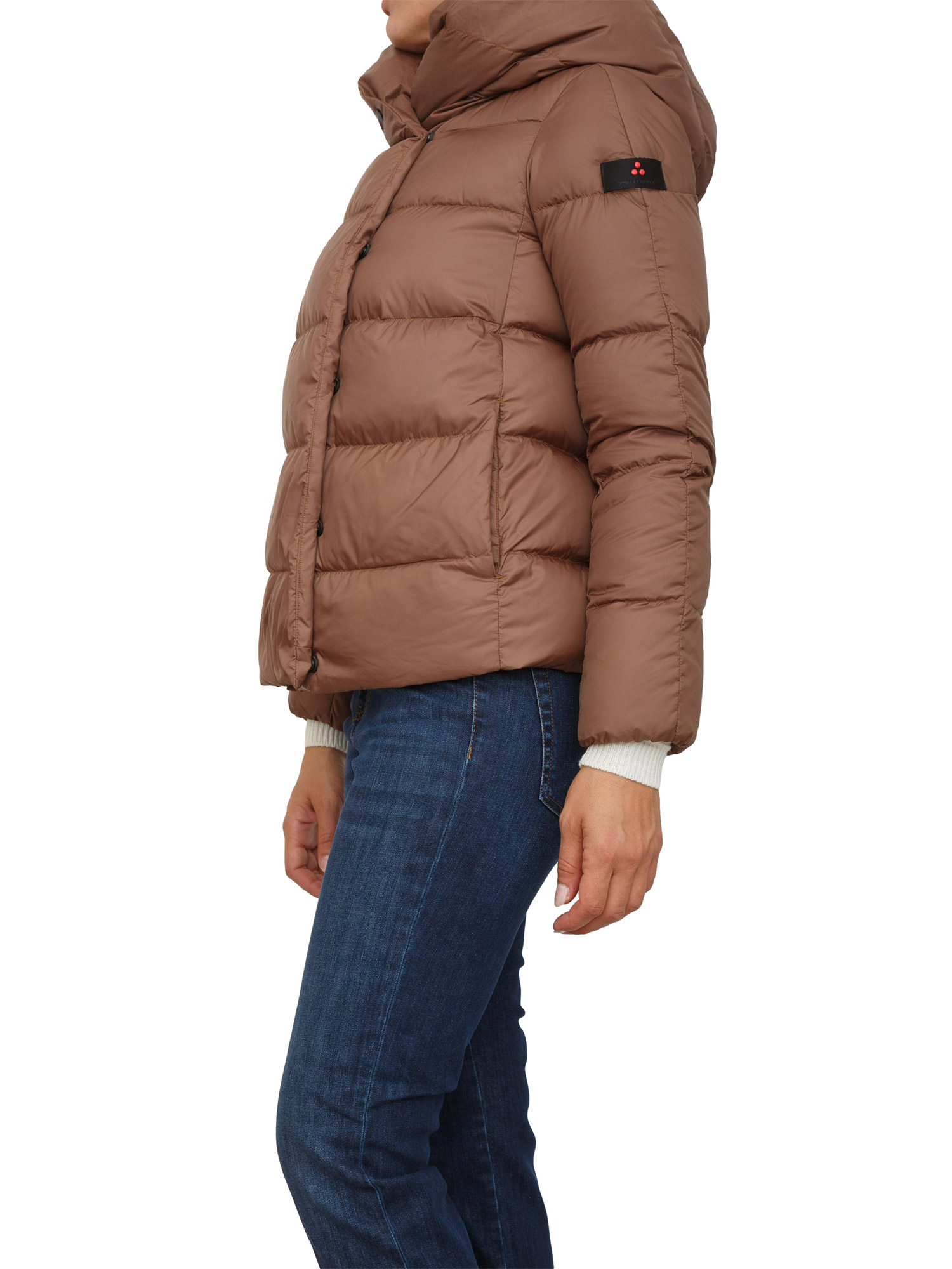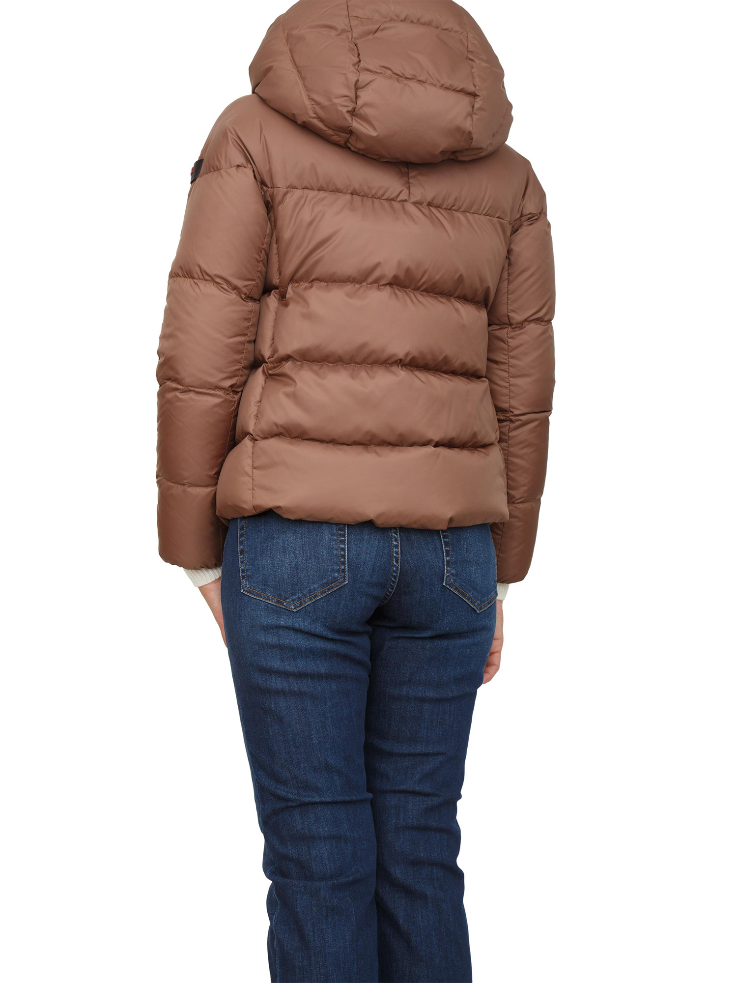 Piumino corto marrone Peuterey in piuma naturale e tessuto superleggero