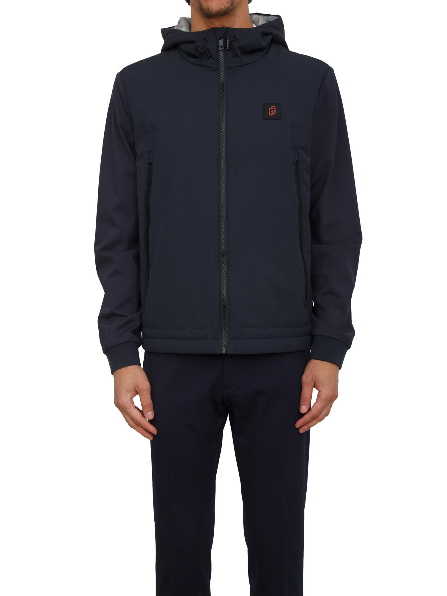 Brand: LIU JOGiubbino Liu Jo uomo realizzato in nylon con cappuccio con coulisse e vestibilità dritta. Polsi con elastico, comode tasche laterali e patch logo a contrasto sul petto. Il modello è alto 1.90m e indossa la taglia L.