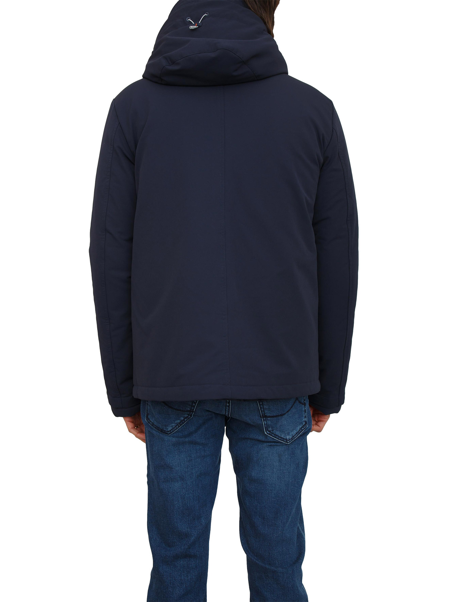 Brand: DEKKERGiubbino uomo Dekker modello field jacket bimaterico in scuba tecnico e nylon tecnico water repellent ed imbottitura in Sorona. Fit compatto, il colletto a camicia eD ampie tasche frontali che richiamano l’heritage utility. Il modello è alto 1.90m e indossa la taglia M.