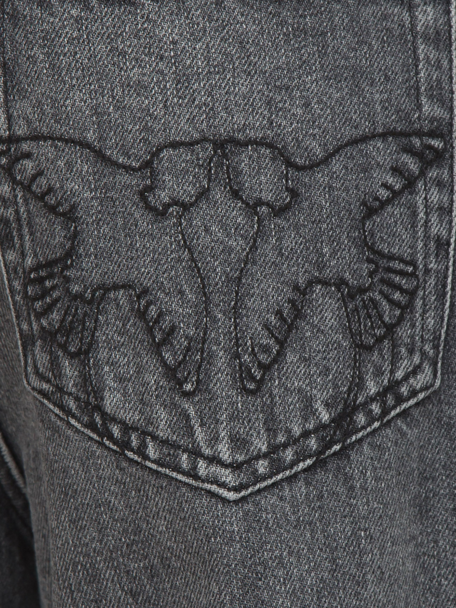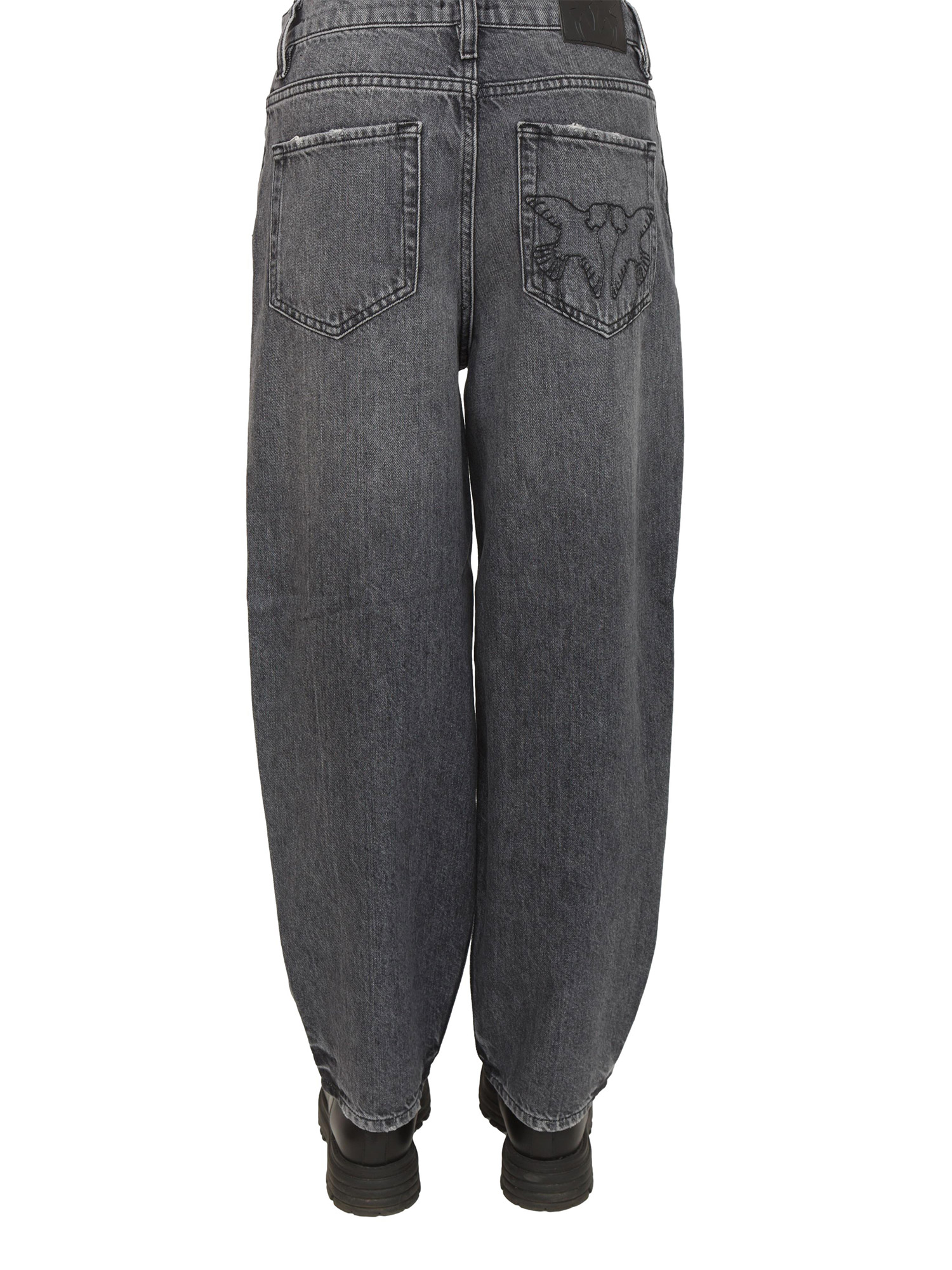 Brand: PINKOJeans Pinko modello balloon realizzato in denim di cotone e lyocell per una mano fluida e confortevole. Lavaggio stone wash con alcune zone trattate per creare un effetto tridimensionale. Vita regular con passante logo, chiusura zip e bottone a chiodo in metallo. La modella è alta 1.72 e indossa la taglia 26.