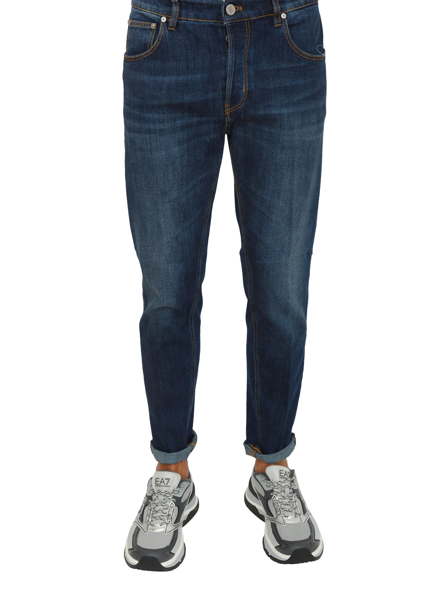 Brand: PT TORINOJeans uomo PT Torino in denim stretch dalla tela morbida, confortevole e resistente (12 once), con lavaggio uniforme e cuciture color tabacco.Con linea tapered, vita regular e risvolto al fondo, hanno un aspetto ricercato ed elegante perfetto anche in look formali.