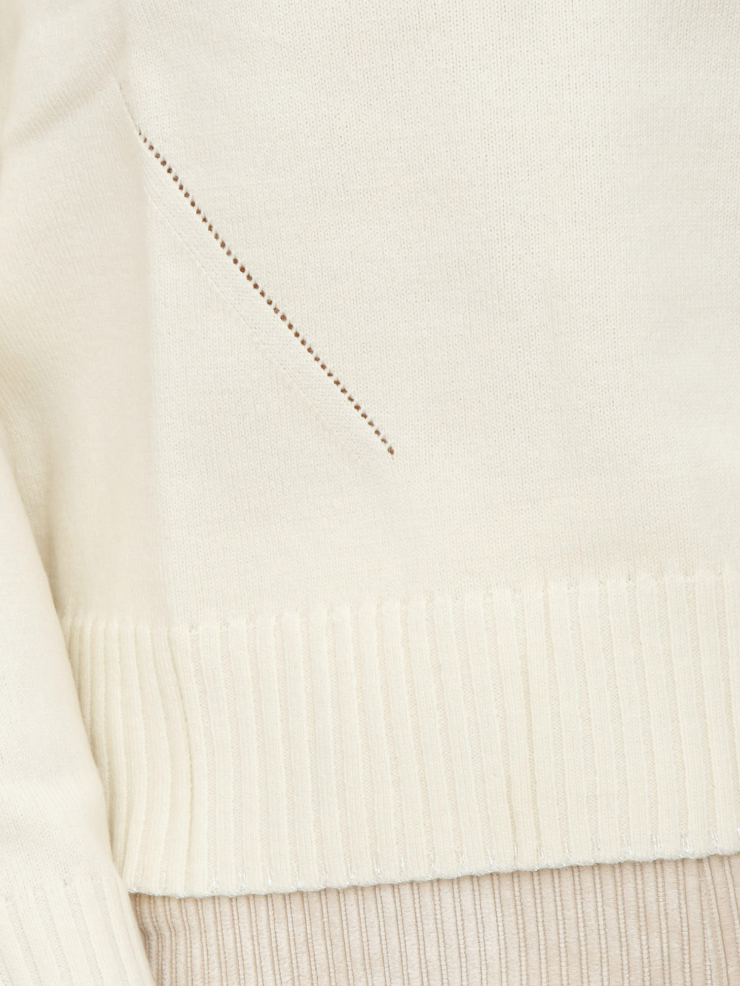 Brand: KOCCAUn delicato motivo a trafori impreziosisce il davanti di questa maglia Celeno di Kocca a girocollo e maniche lunghe. Design caratterizzato da vestibilità boxy, taglio dritto e bordi a costine. Un passepartout per ogni outfit. La modella è alta 1.72 e indossa la taglia S.
