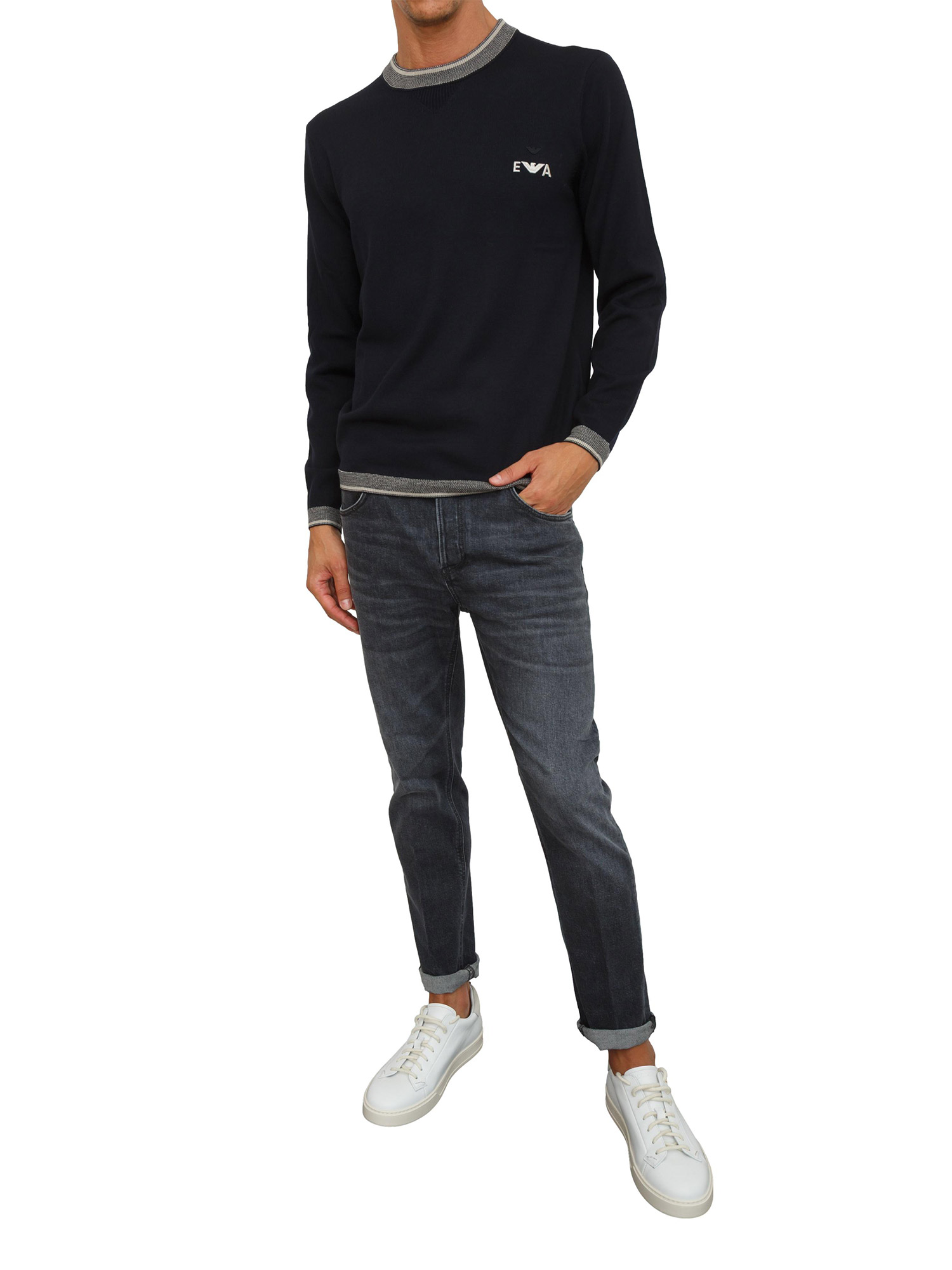 Maglia da uomo blu Emporio Armani in lana vergine