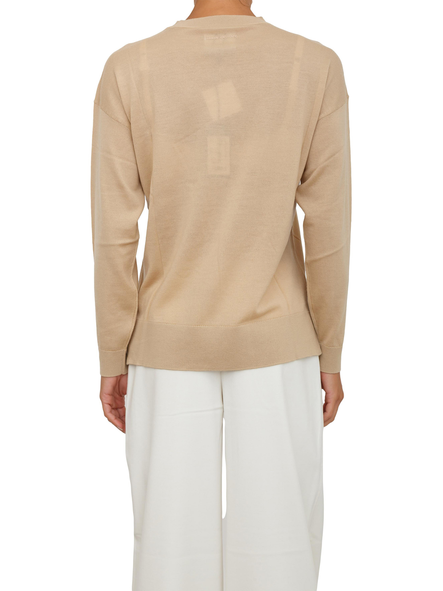 Maglia donna Armani Exchange in misto viscosa beige con maxi logo tono su tono