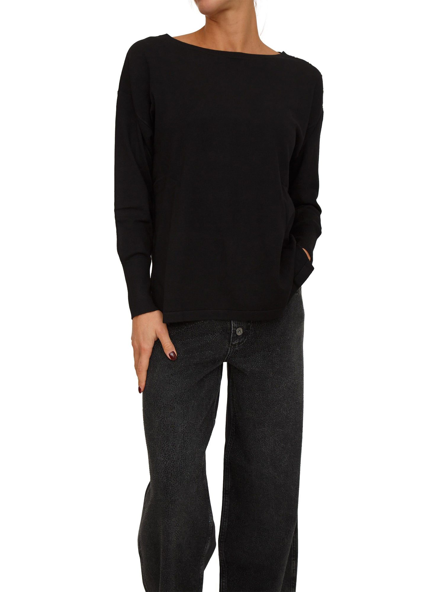 Maglia donna Fracomina in misto viscosa nera con bottoni