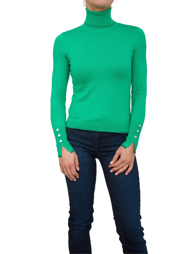 Brand: LIU JOMagia dolcevita Liu Jo realizzata in un pregiato misto viscosa, perfetta per ogni occasione. Con dettagli esclusivi, come gli inserti in lurex che donano un tocco di brillantezza, questa maglia è un must-have nel tuo guardaroba. Il suo collo con motivo grafico, abbinato alle maniche lunghe, crea un look sofisticato e alla moda. I polsi sono arricchiti da spacchetti e bottoni decorativi, mentre il logo con strass sul retro aggiunge un tocco di luce. Ideale per chi cerca un capo versatile e ricercato, che unisce eleganza e praticità.