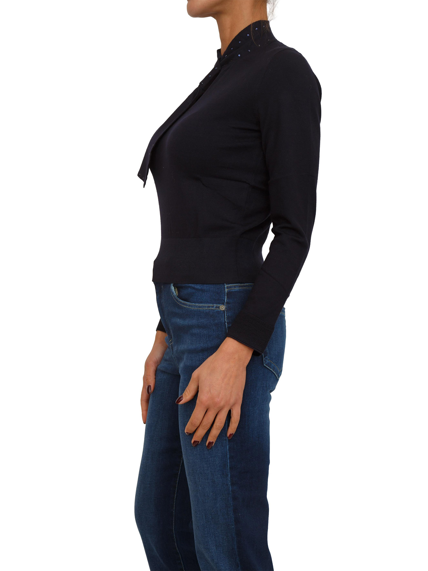 Maglia donna Maestrale Nenette in viscosa blu con sciarpina e borchie