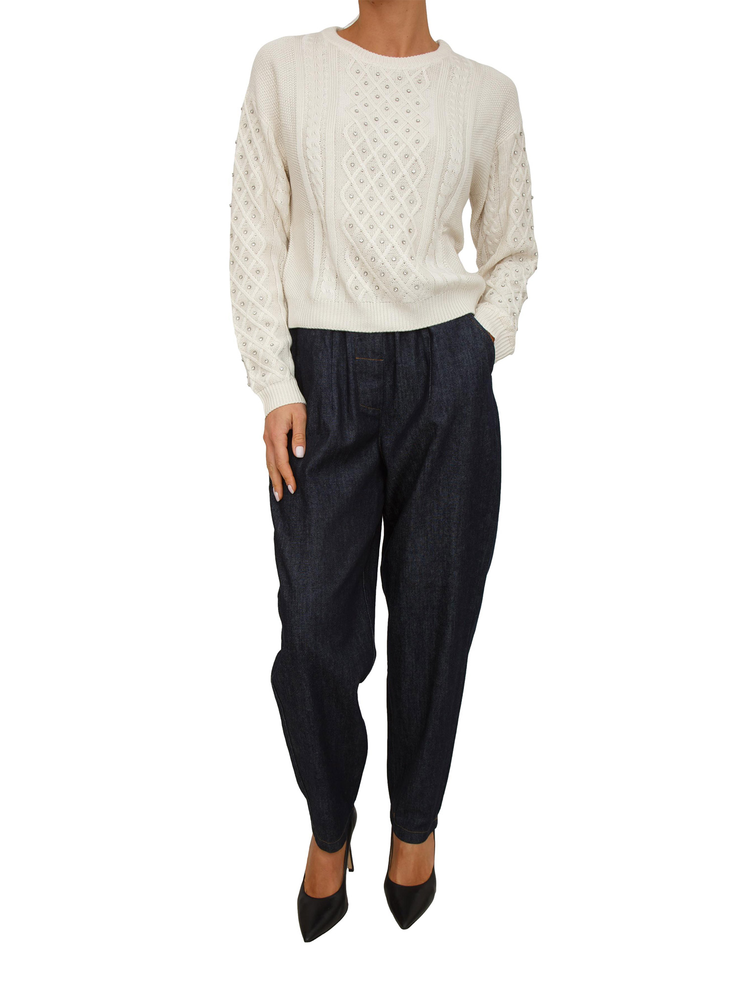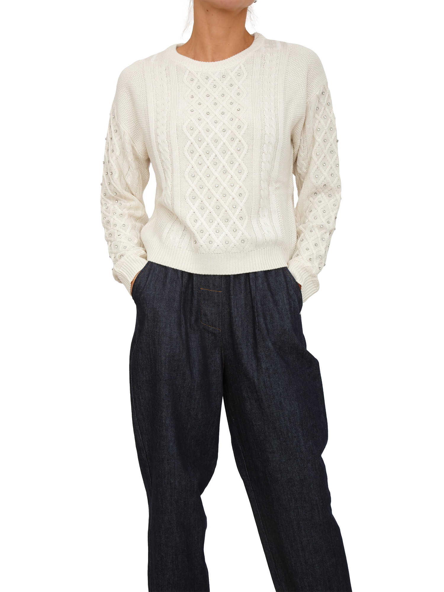 • Maglia Emiliana Kocca bianco panna con diamantini in DONNA