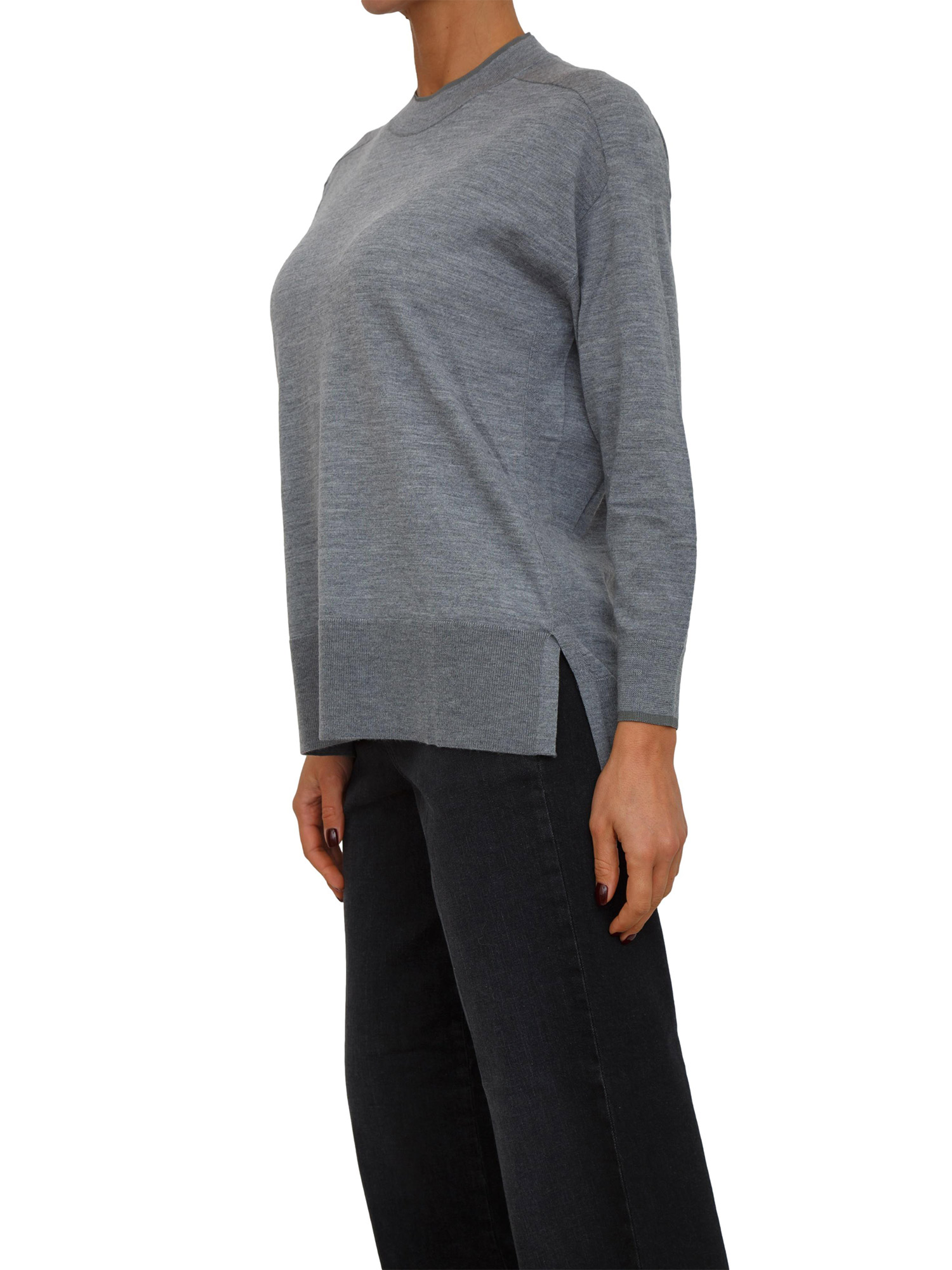 Brand: NENETTEMaglia girocollo Mover Nenette realizzata in pura lana merino con spacchi laterali, morbida e avvolgente. Un capo versatile e contemporaneo, perfetto per creare look casual-chic con un dettaglio originale che valorizza la silhouette. La modella è alta 1.72 e indossa la taglia XS.