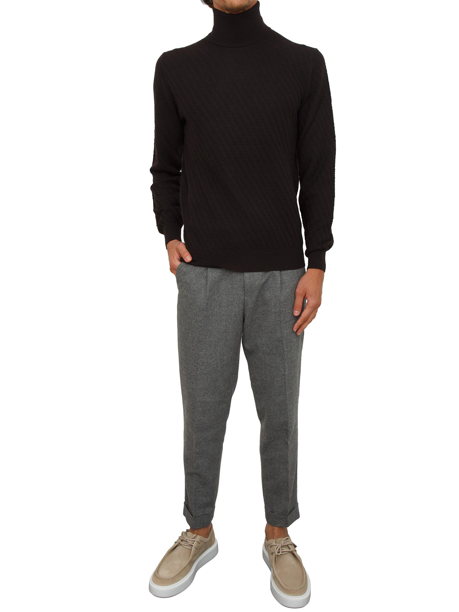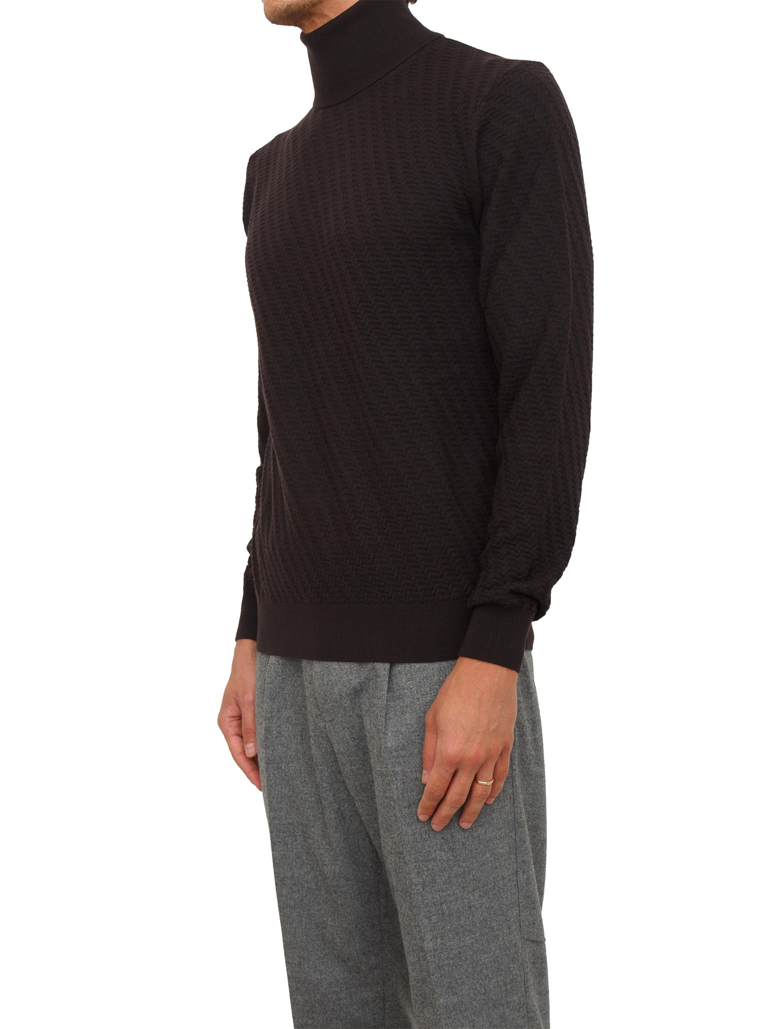 Maglia lupetto Paolo Pecora in lana marrone con lavorazione wave