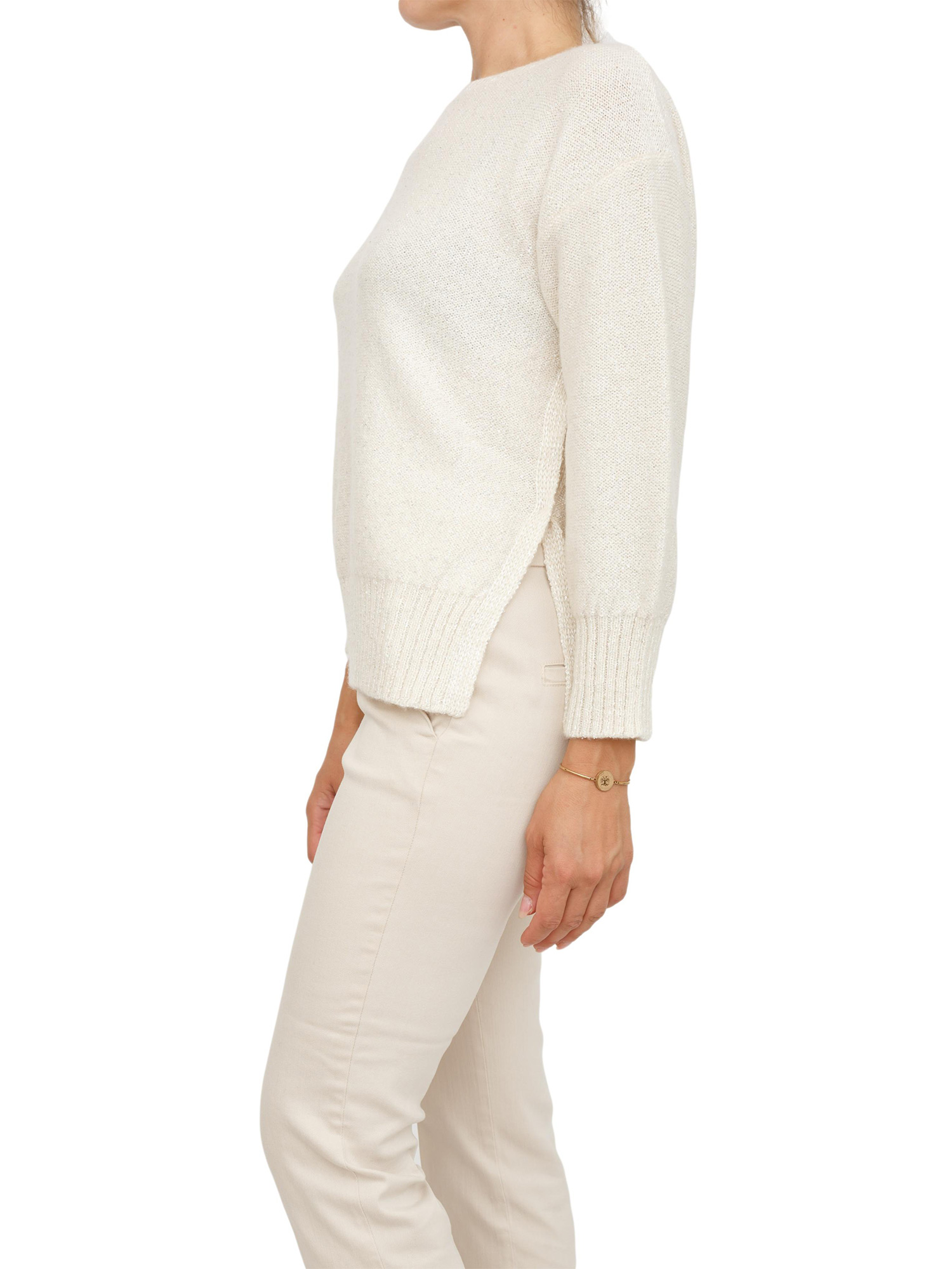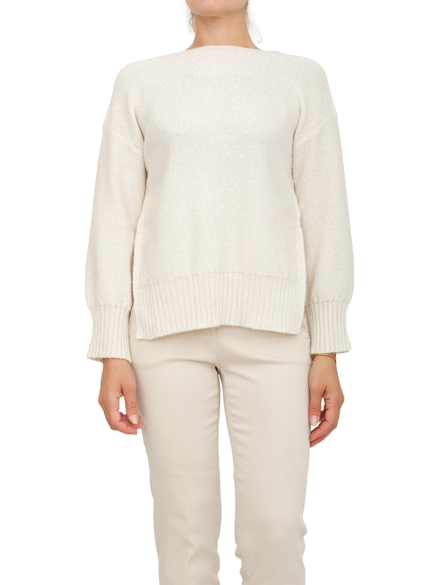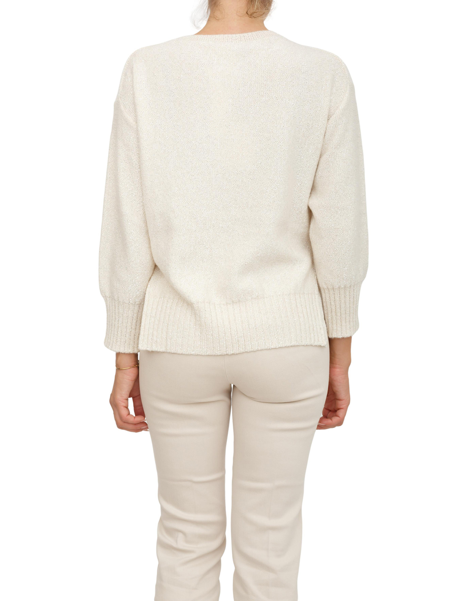 Maglia Marella in misto cashmere crema con paillettes e spacco con bottone