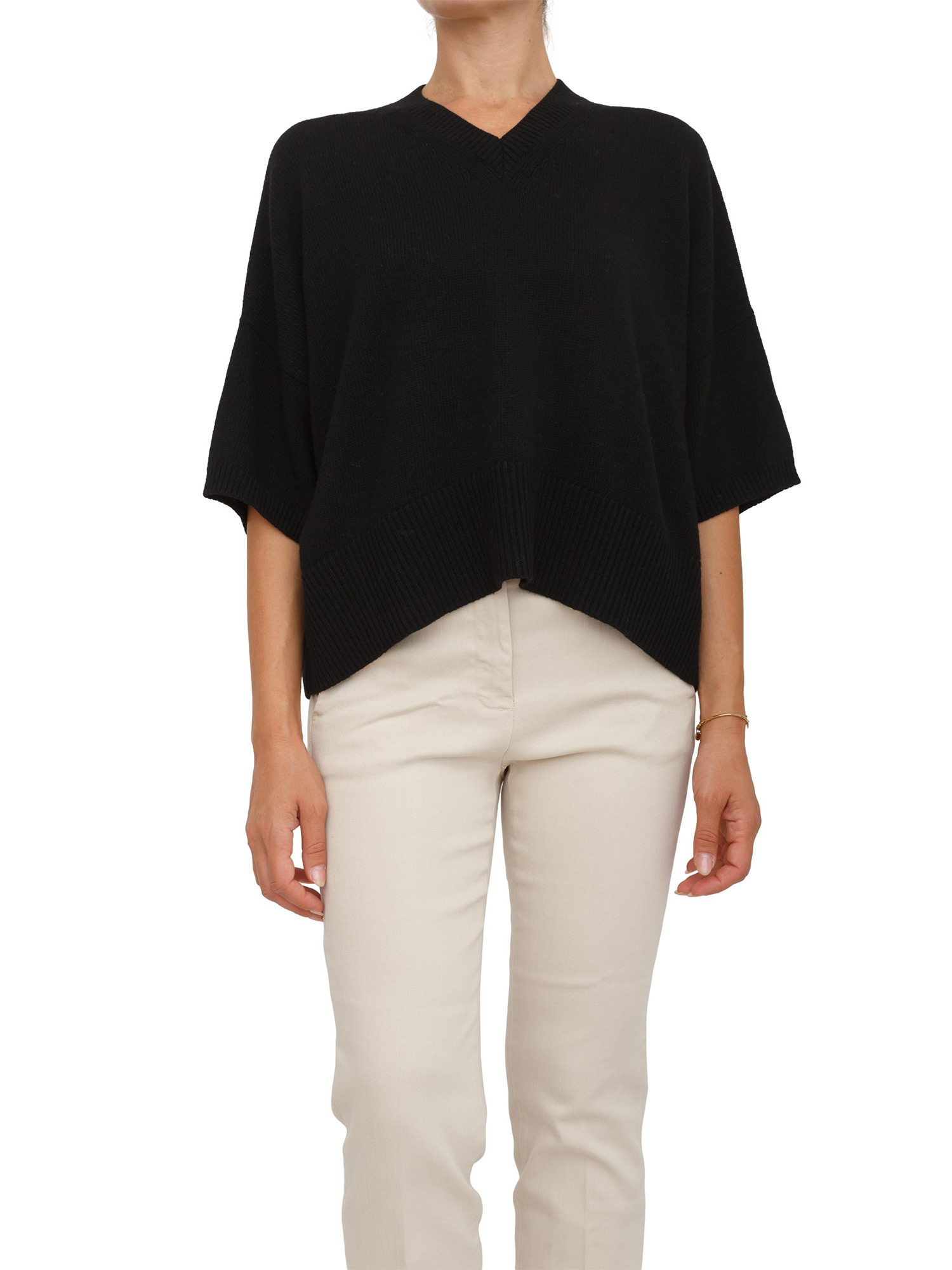 Maglia Marella manica corta scesa con scollo V in misto lana nera