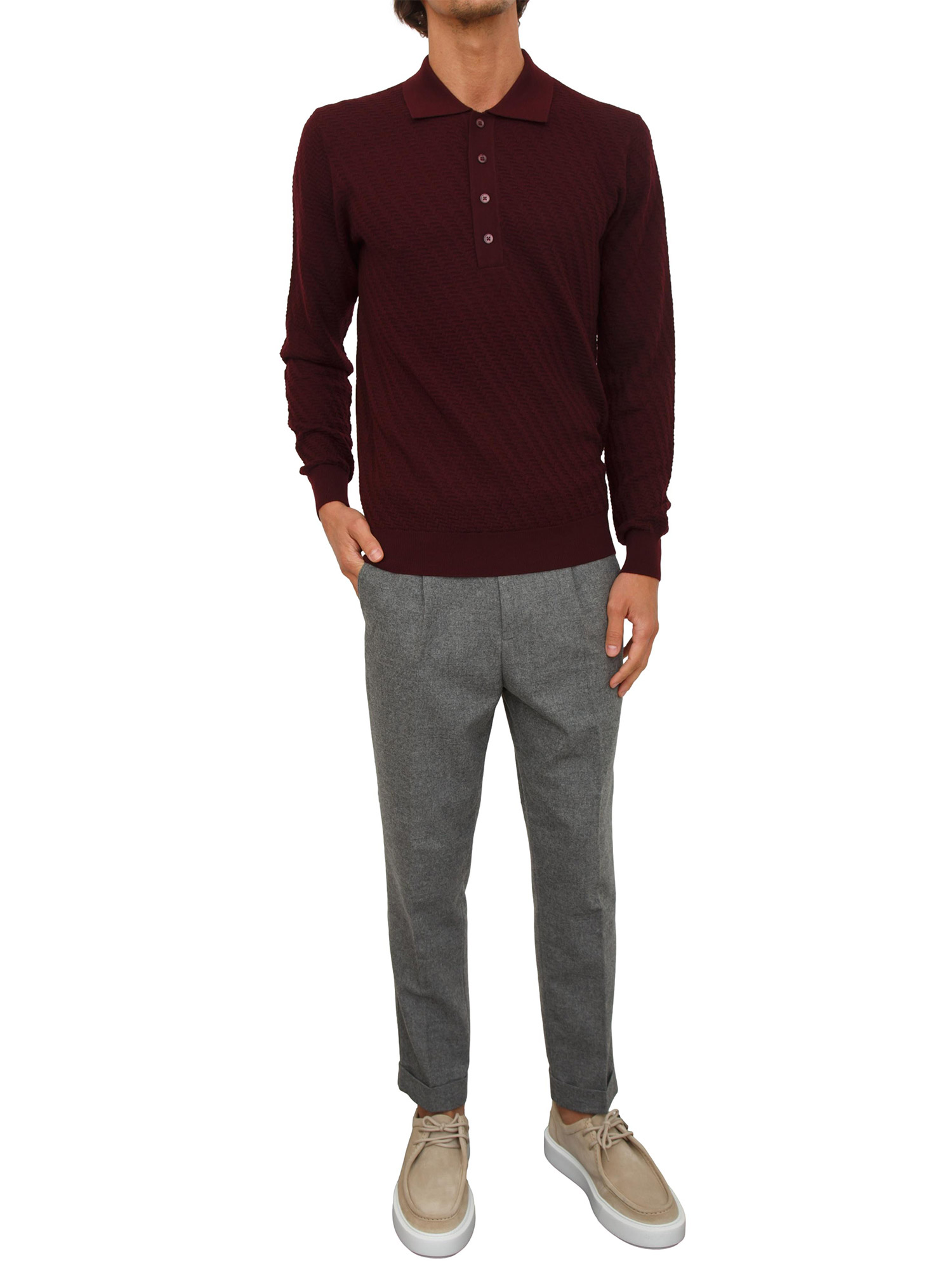 Brand: PAOLO PECORAMaglia polo Paolo Pecora in lana merino extrafine caratterizzato da lavorazione a punto diagonale che dona texture e personalità al capo. Il design con colletto, chiusura a bottoni e bordi a costine mantiene un’eleganza essenziale e senza tempo. Il modello è alto 1.90m e indossa la taglia L.