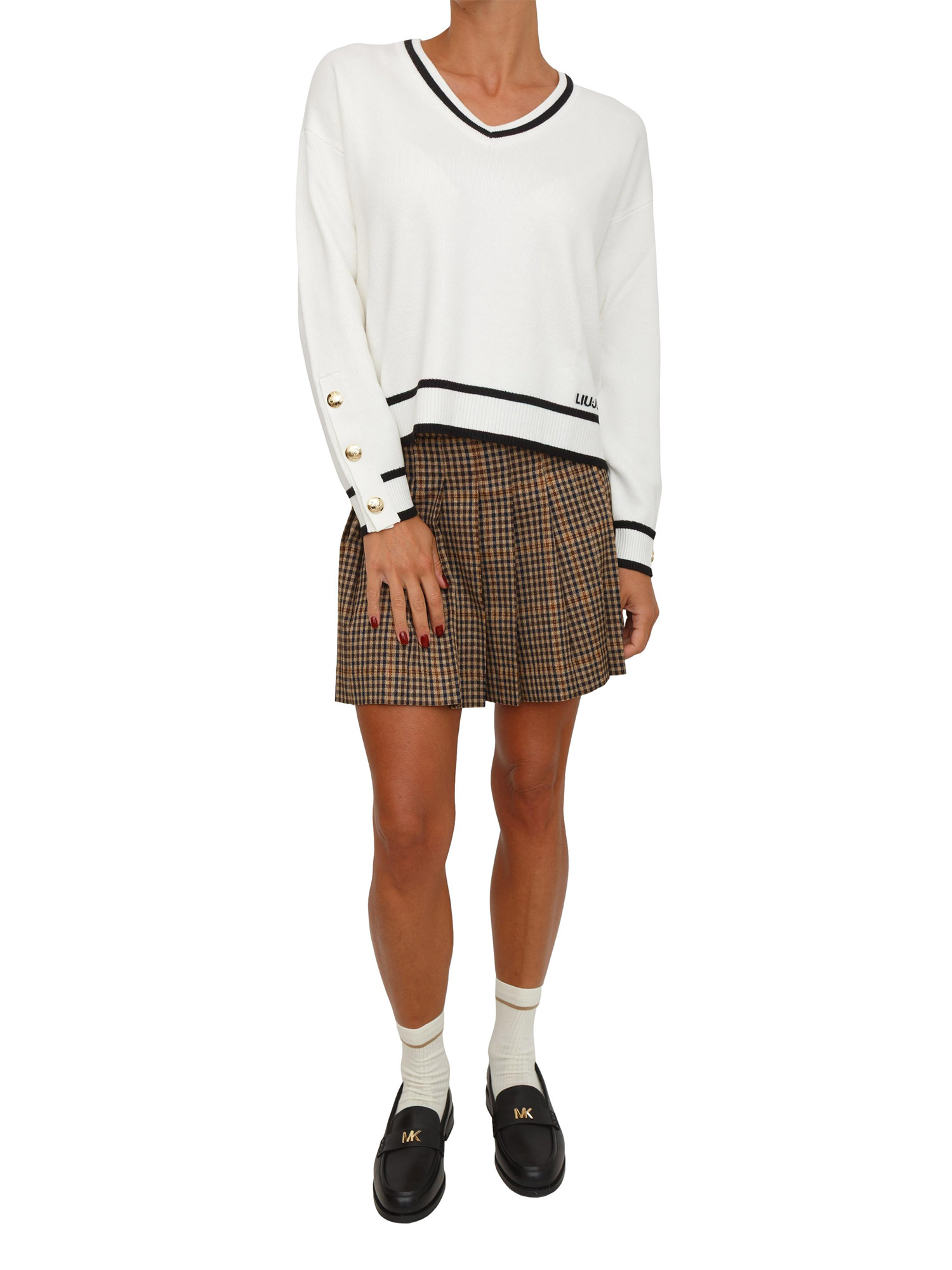 LIU JO Maglia scollo V in misto seta bianco con bottoni oro