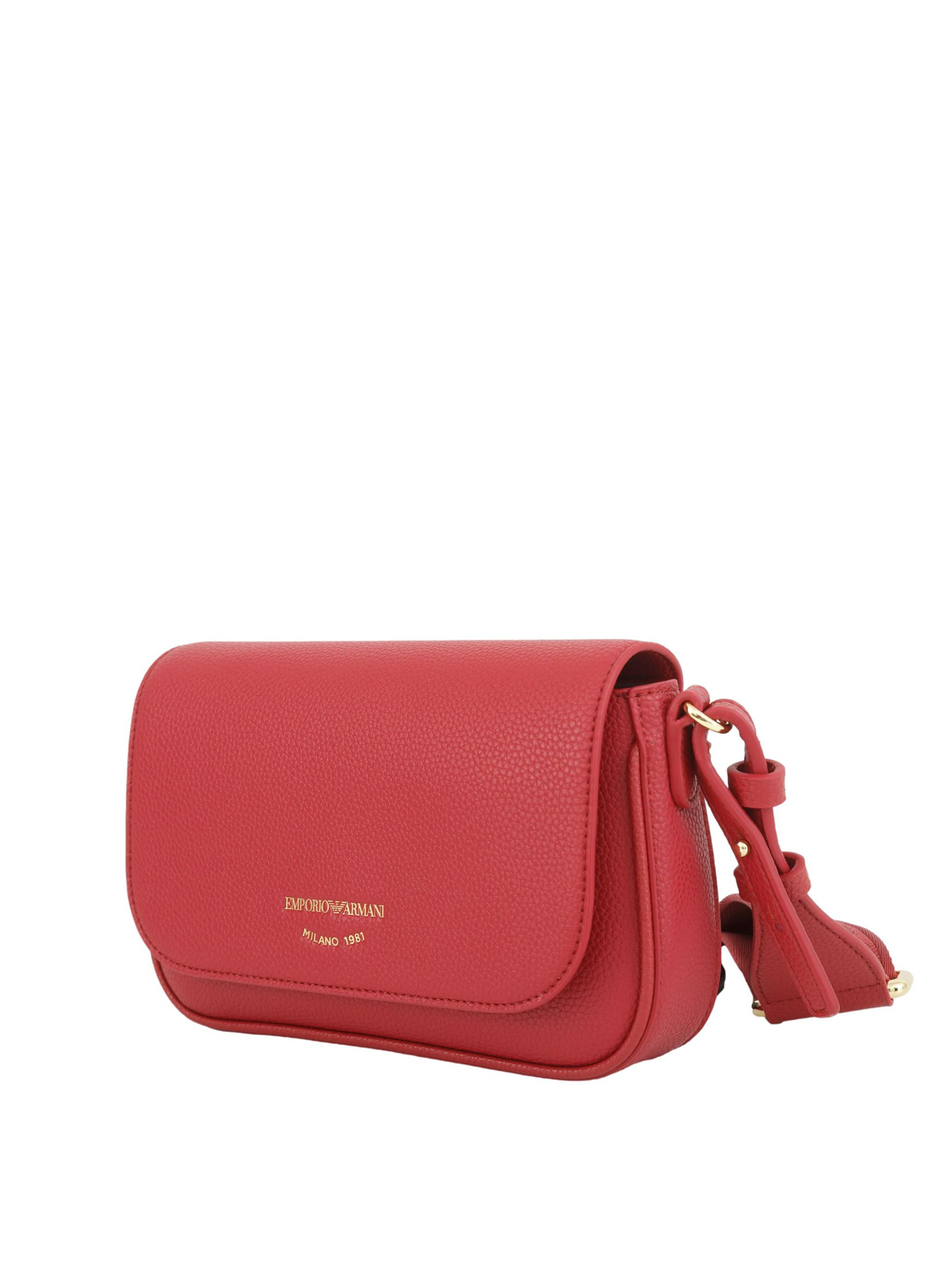 Mini bag Emporio Armani in ecopelle rossa con tracolla in tessuto con logo