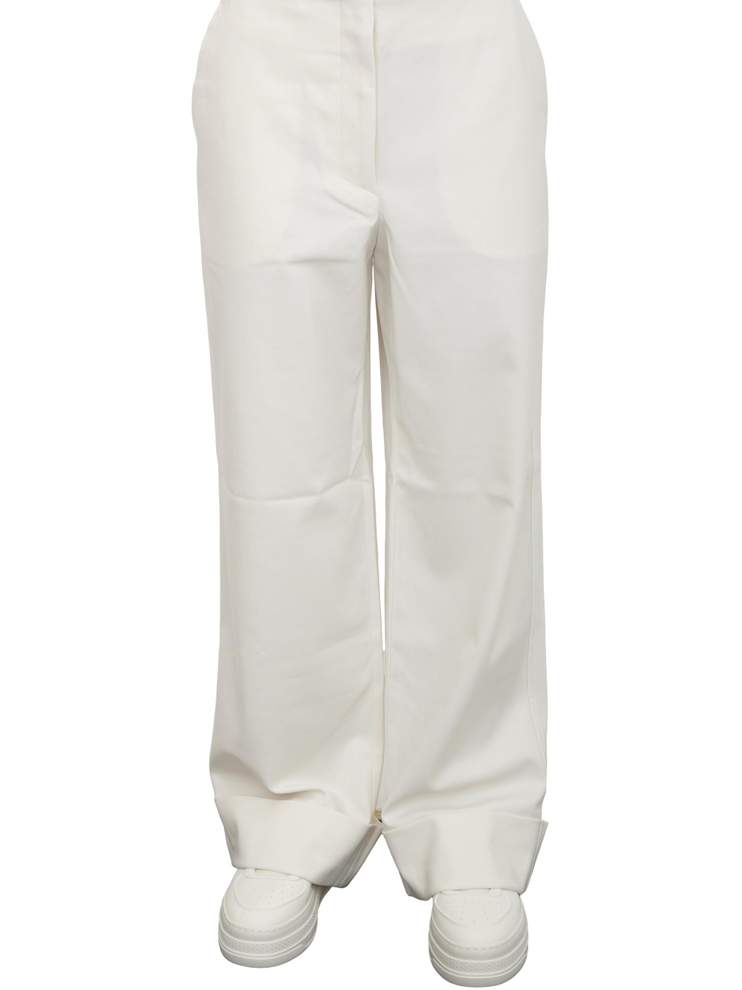 Pantalone donna Armani Exchange in misto viscosa avorio con risvolti