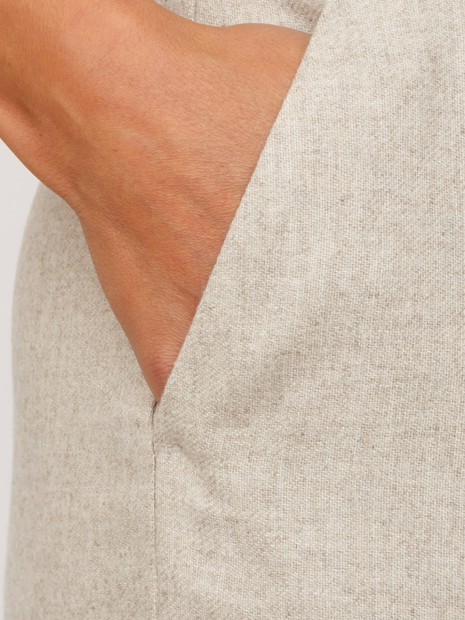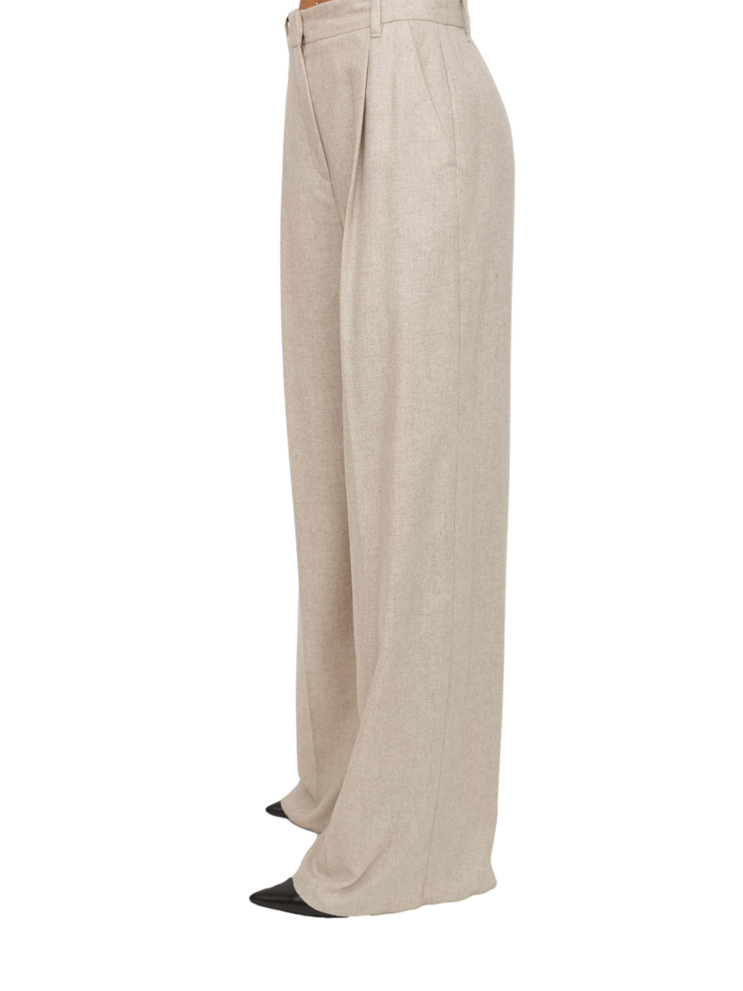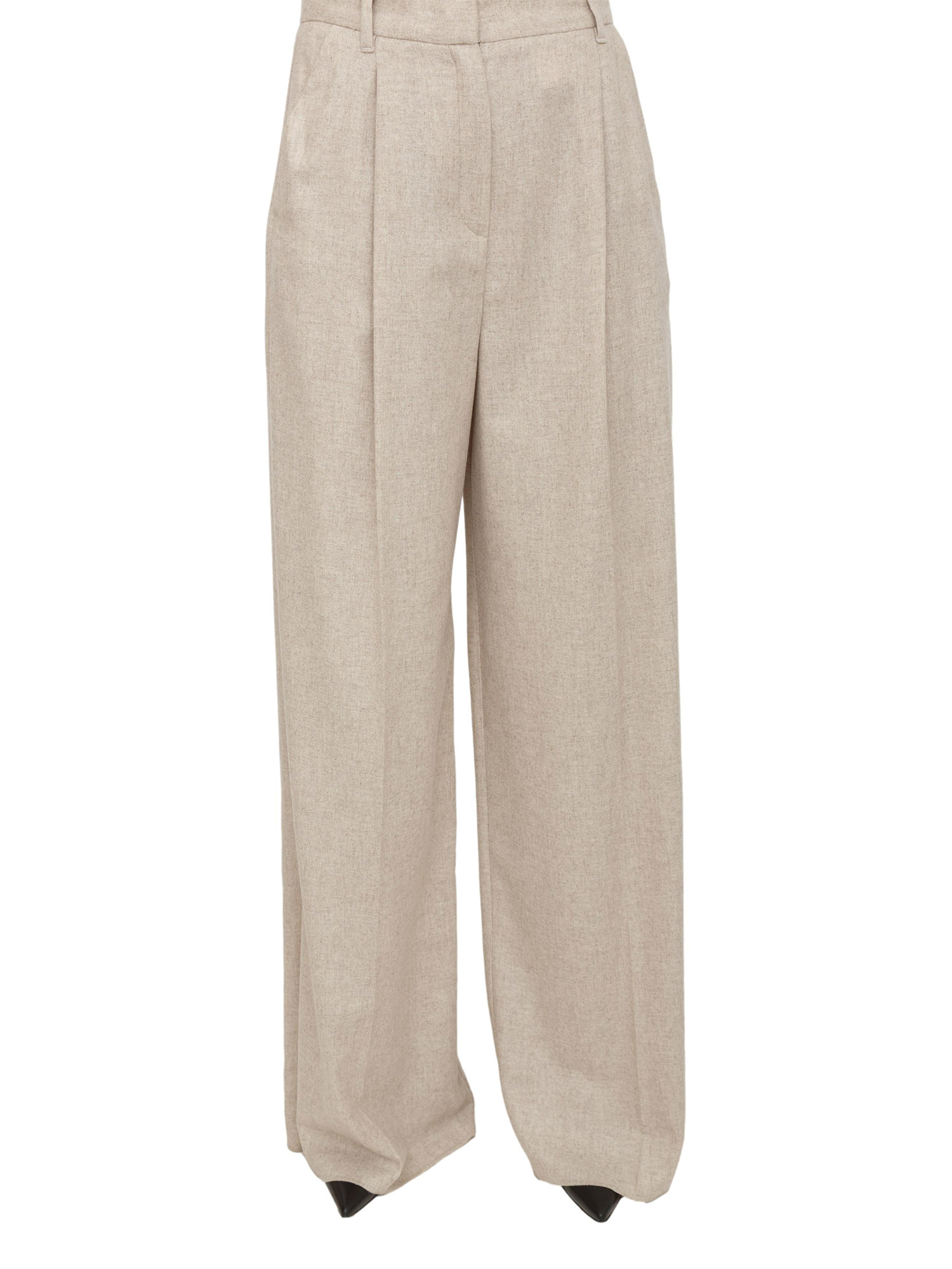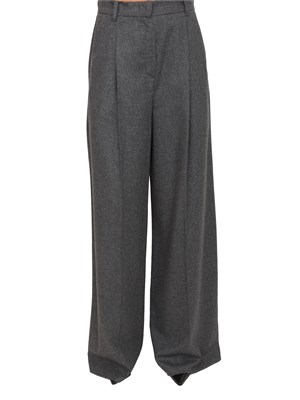 Brand: EMME MARELLAAmpio, morbido, naturalmente elegante, il pantalone Emme Marella realizzato in flanella leggera scivola disegnando una silhouette rilassata ma precisa. Le pince in vita e la piega stirata aggiungono struttura, per un look che unisce comfort e raffinatezza. La modella è alta 1.72 e indossa la taglia 40.