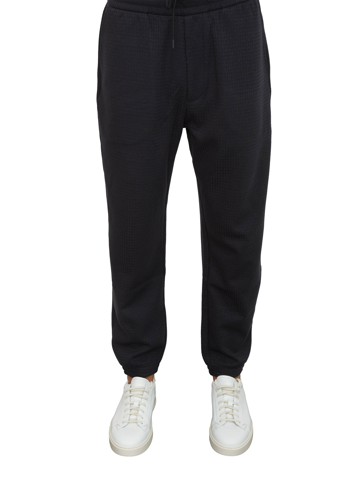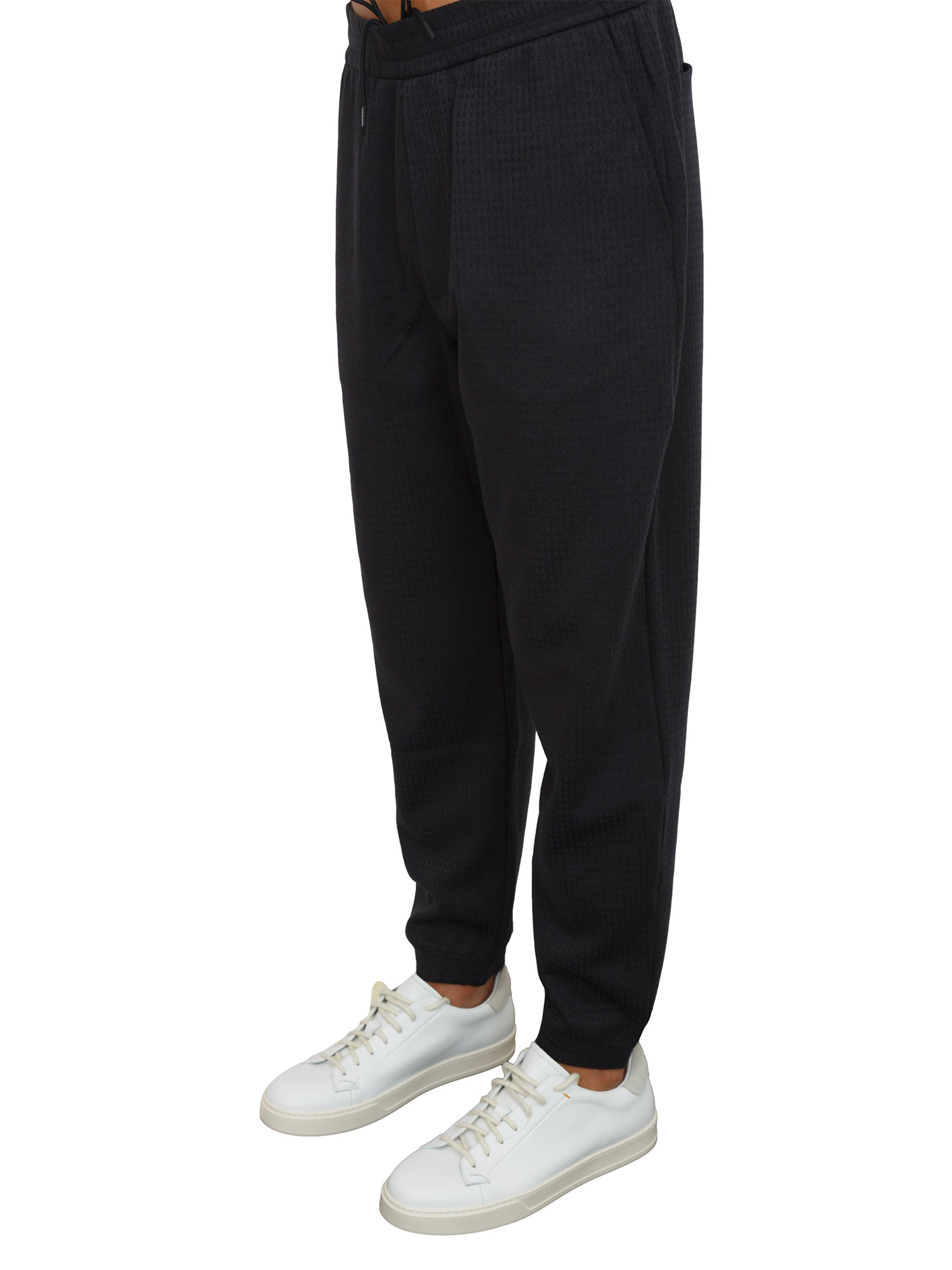 • Pantaloni blu Emporio Armani in jersey jacquard misto lyocell ASV in UOMO
