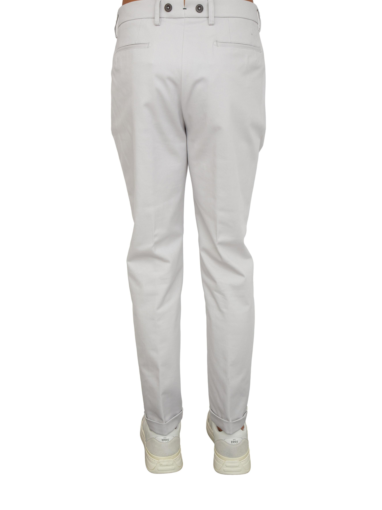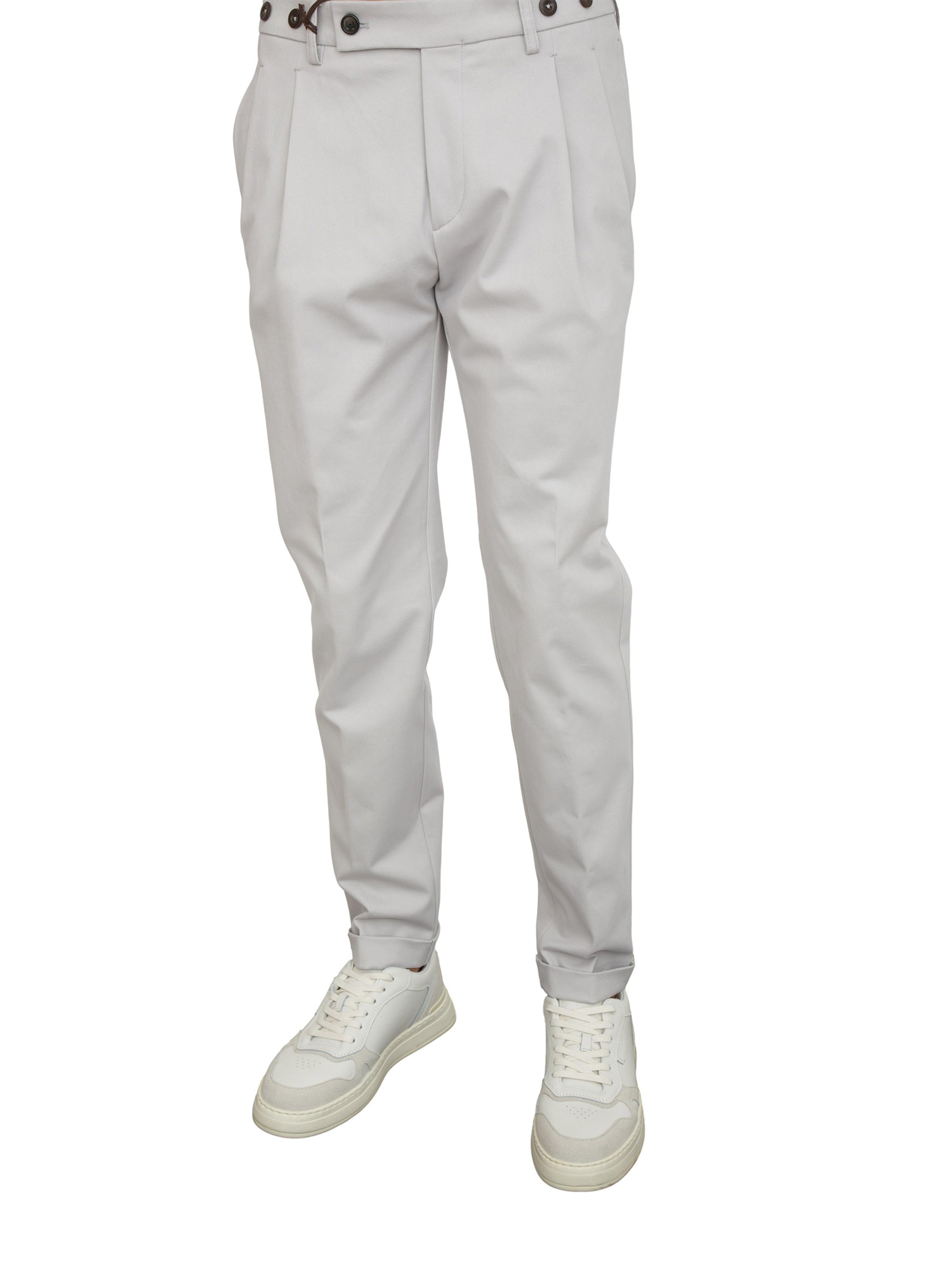 Brand: BERWICHPantaloni uomo Berwich modello Barber realizzati in pregiatissimo cotone stretch in tinta unita dalla mano calda. Vestibilità slim dotata di pince, tasche chino, passanti in vita e risvolto sul fondo. Semplicemente stupendo sotto ogni outfit. Il modello è alto 1.90m e indossa la taglia 48.