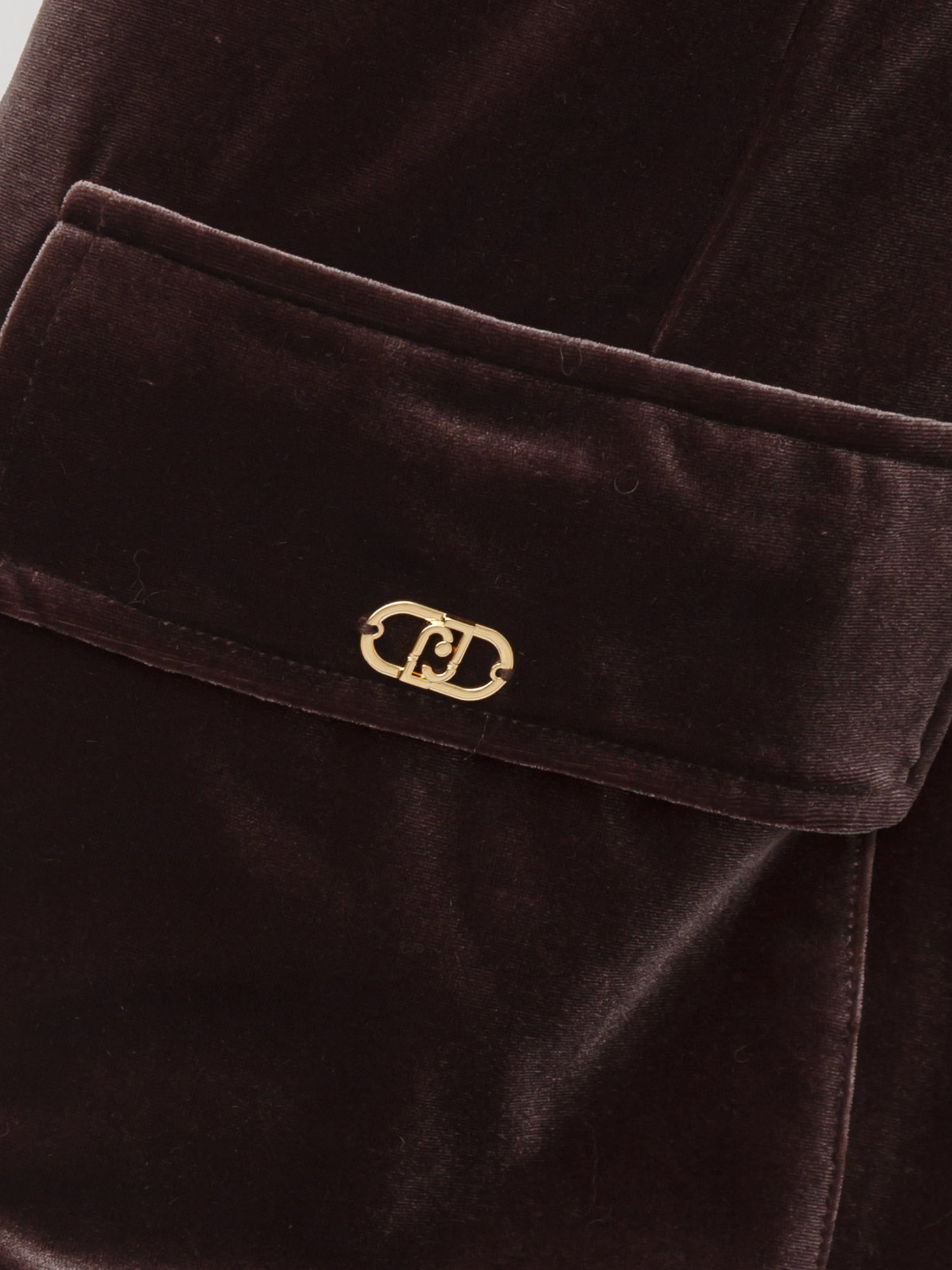 Pantaloni tuta Liu Jo donna in ciniglia stretch marrone con tasche cargo