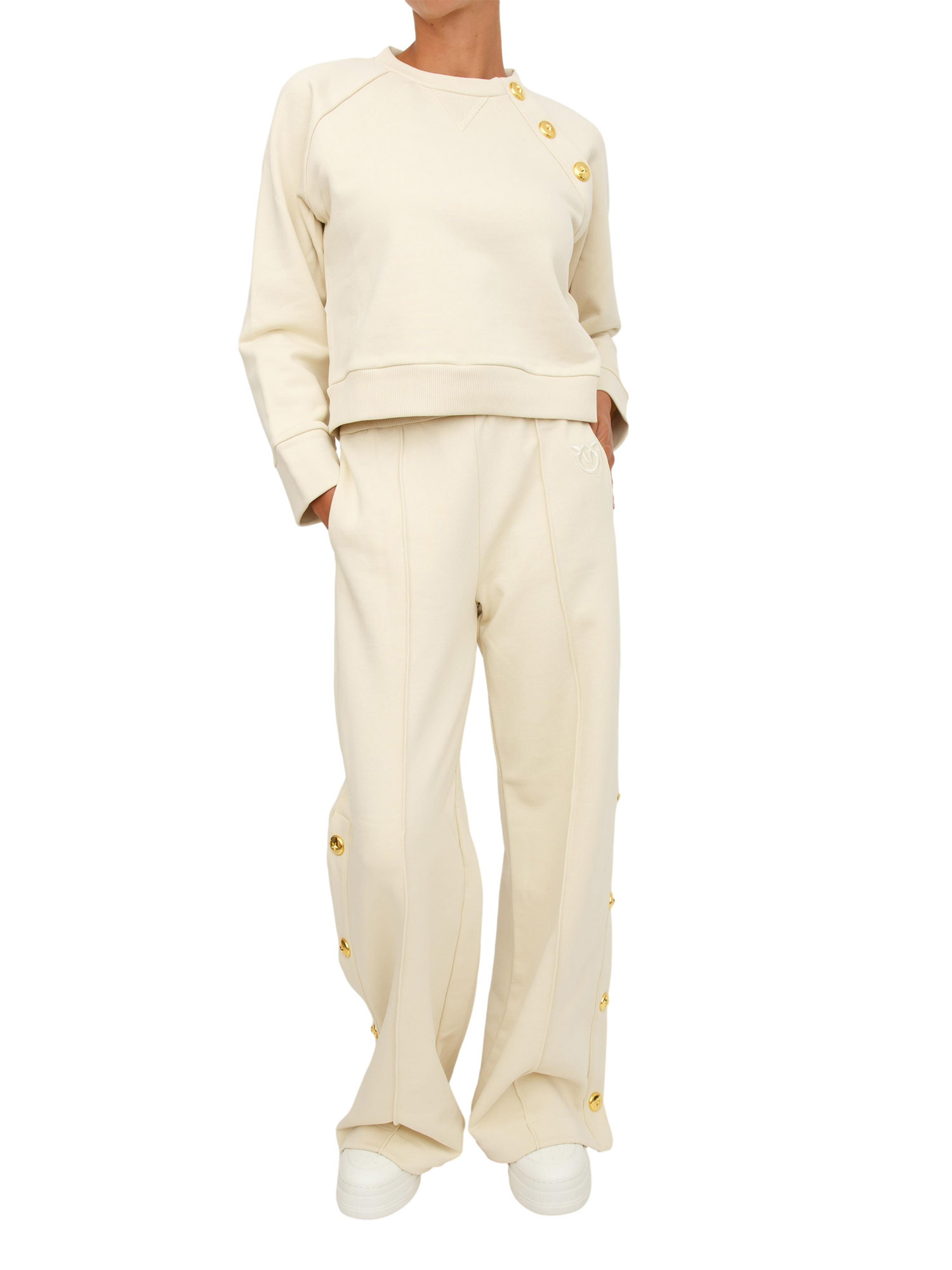 Pantaloni tuta Pinko in cotone avorio con bottoni dorati
