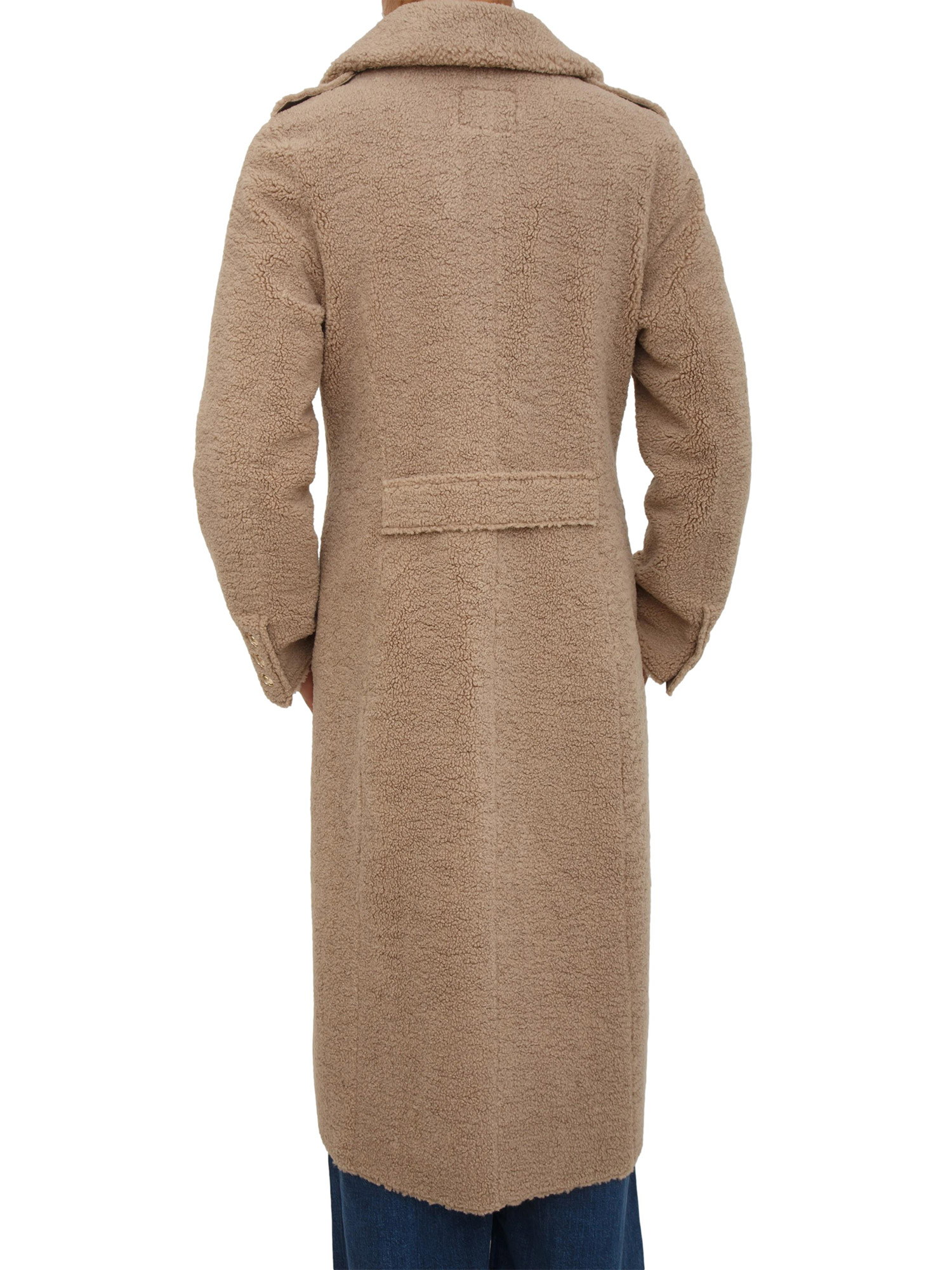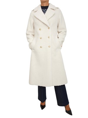 Brand: GUESS JEANSCappotto lungo Guess Jeans donna realizzato in pelliccia sintetica effetto teddy con ampio revers e chiusura doppiopetto con bottoni oro. La modella è alta 1.72 e indossa la taglia S.
