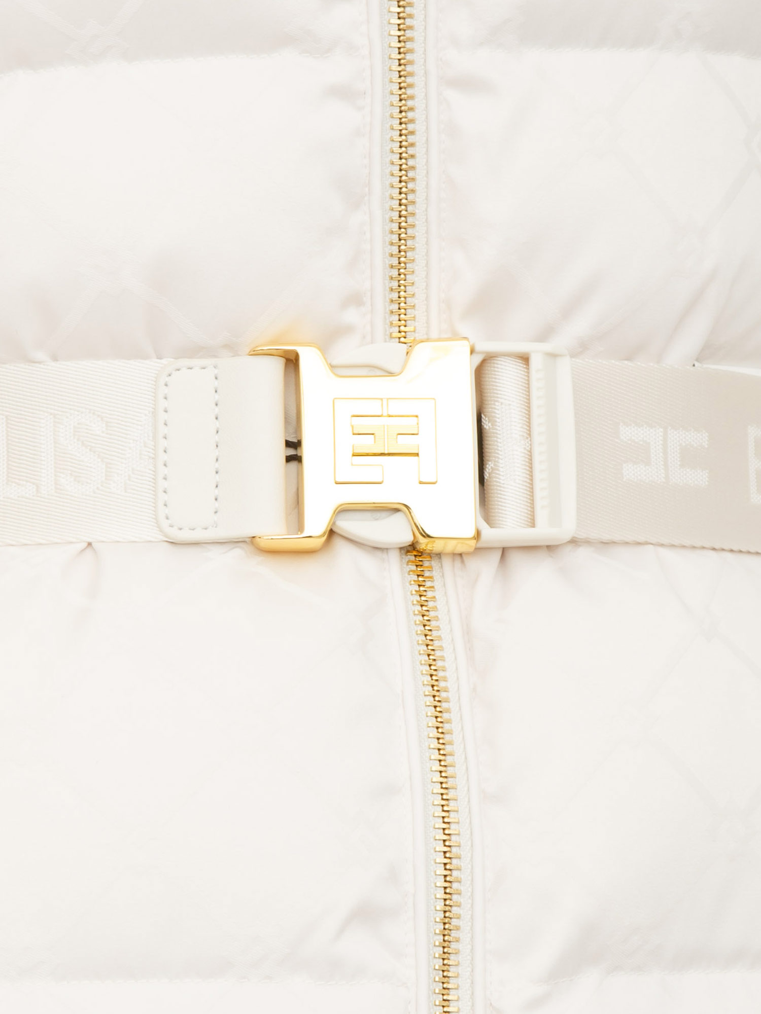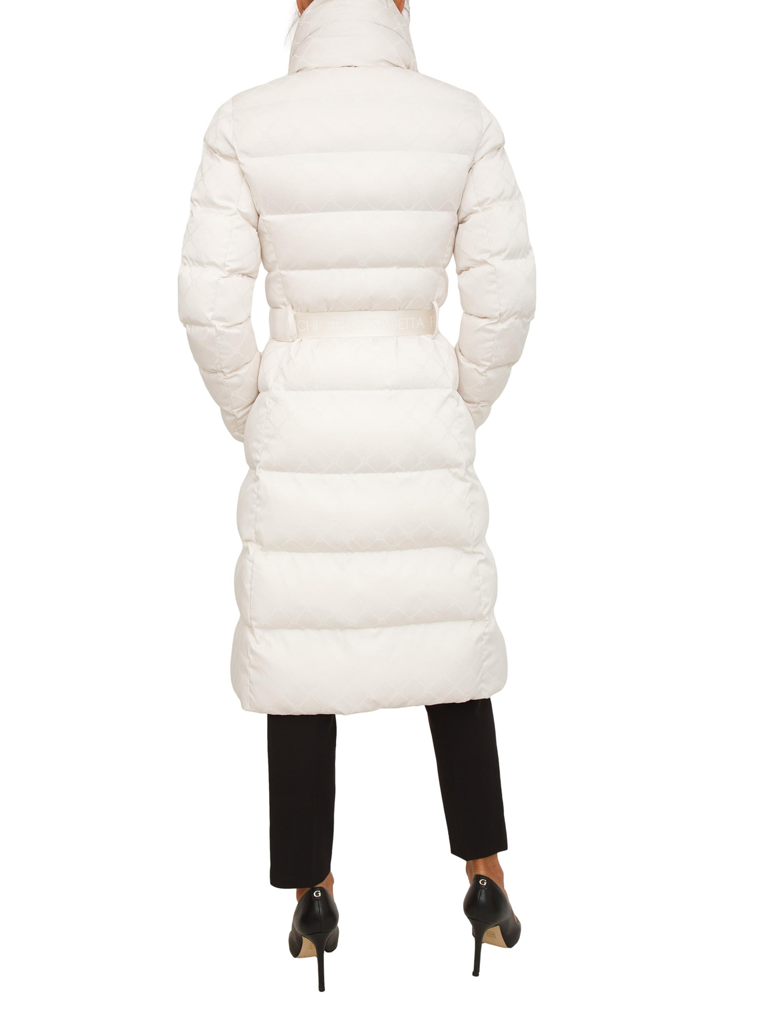 Brand: ELISABETTA FRANCHIPiumino lungo Elisabetta Franchi con tessuto in vela dalla vestibilità regular. Presenta collo con sciarpa imbottita e amovibile e tasche con zip invisibile. Il pattern all-over con losanga jacquard rende la texture preziosa. Cintura in vita con fibbia per definire il punto vita. La modella è alta 1.72 e indossa la taglia 40.