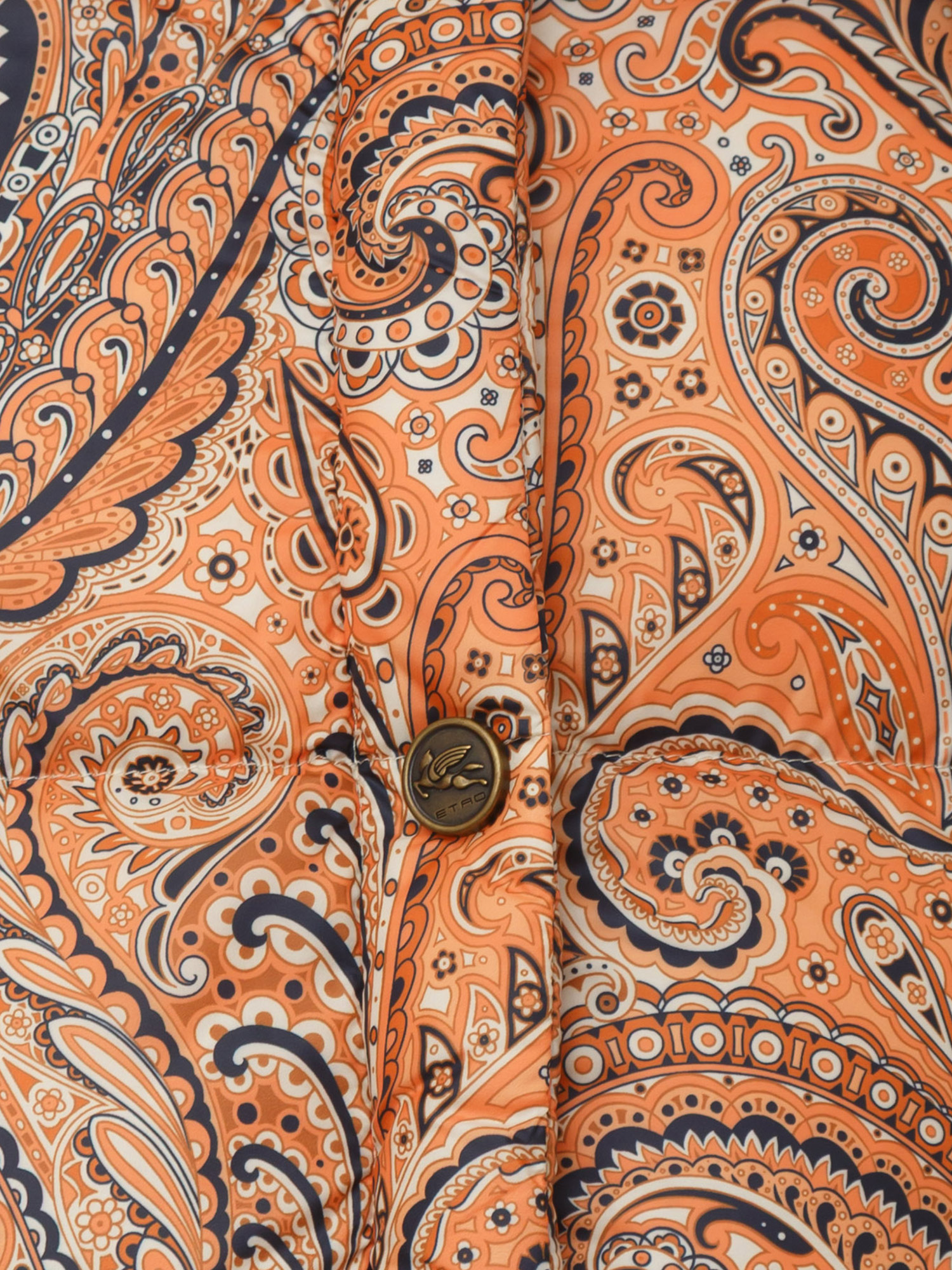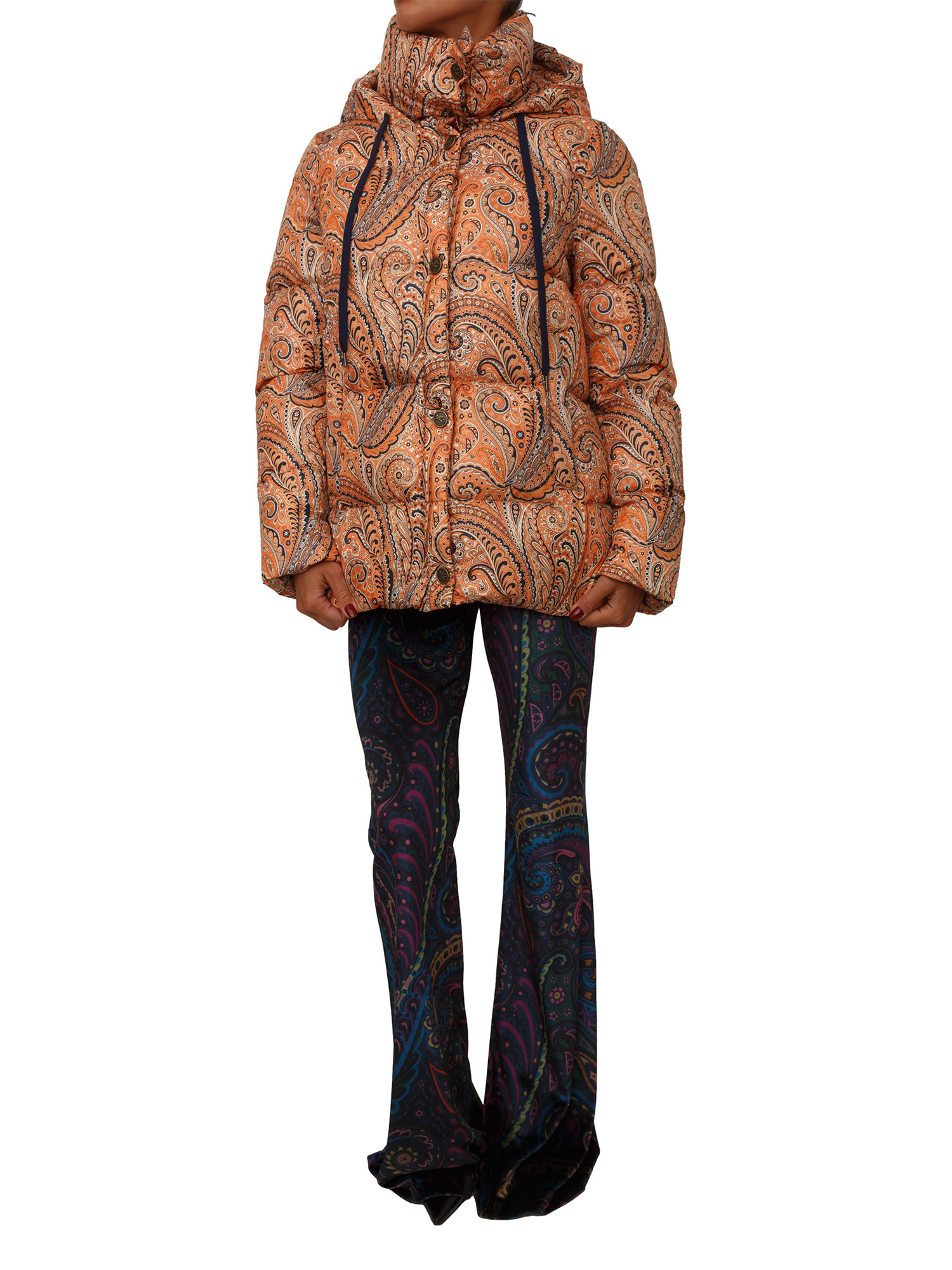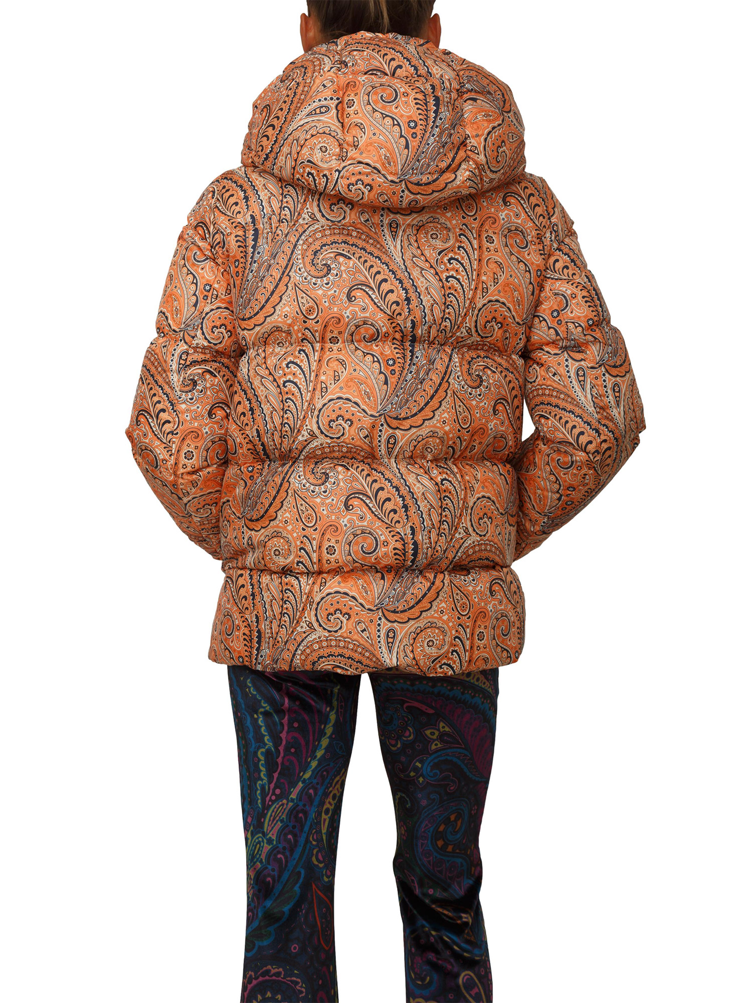 Piumino Etro donna in tessuto tecnico arancione con Paisley multicolor all over