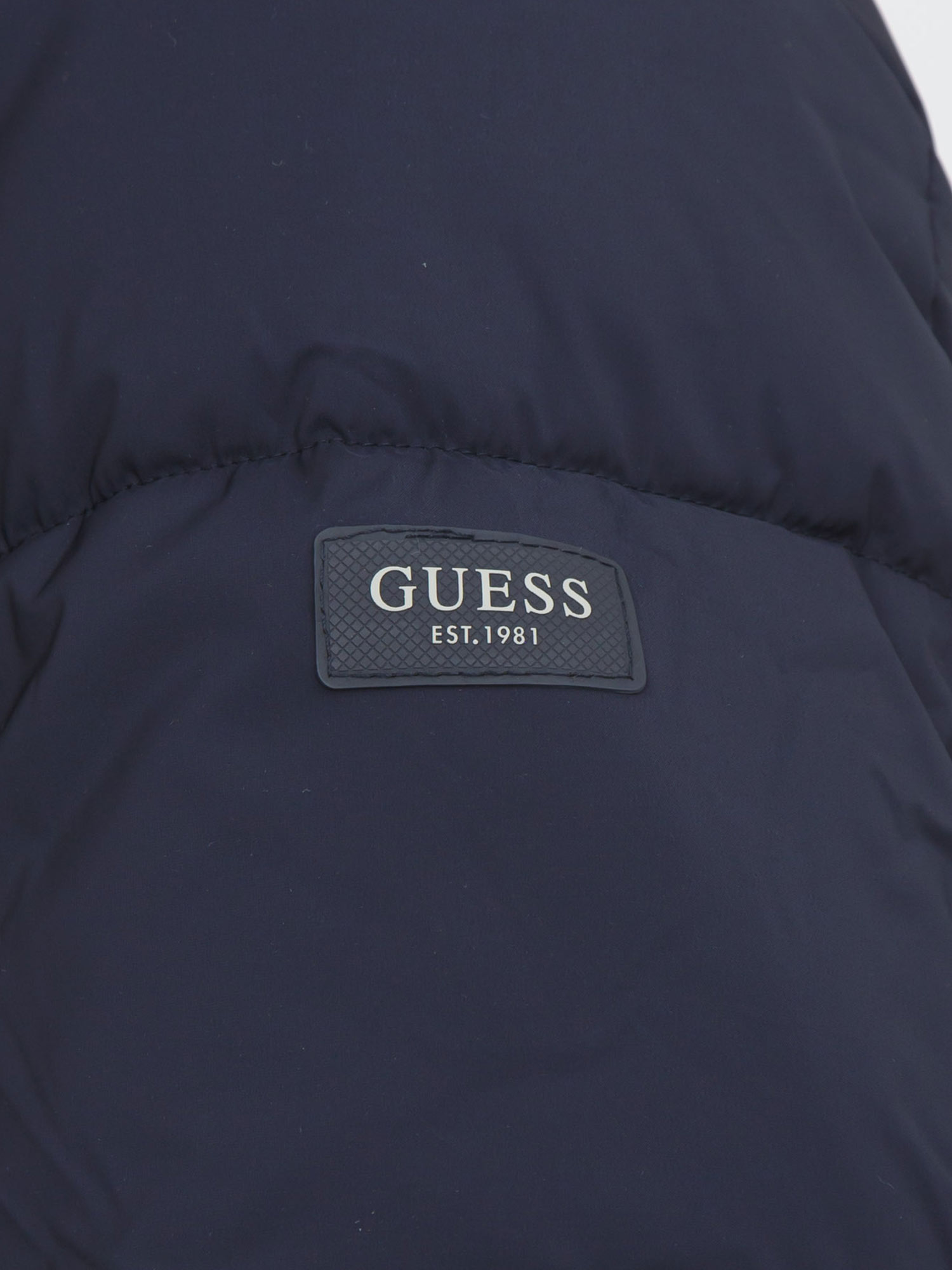 Brand: GUESS JEANSPiumino Guess Jeans uomo realizzato in nylon con imbottitura sintetica e vestibilità regular. Cappuccio rimovibile e tasche laterali con chiusura zip. Il modello è alto 1.90m e indossa la taglia M.