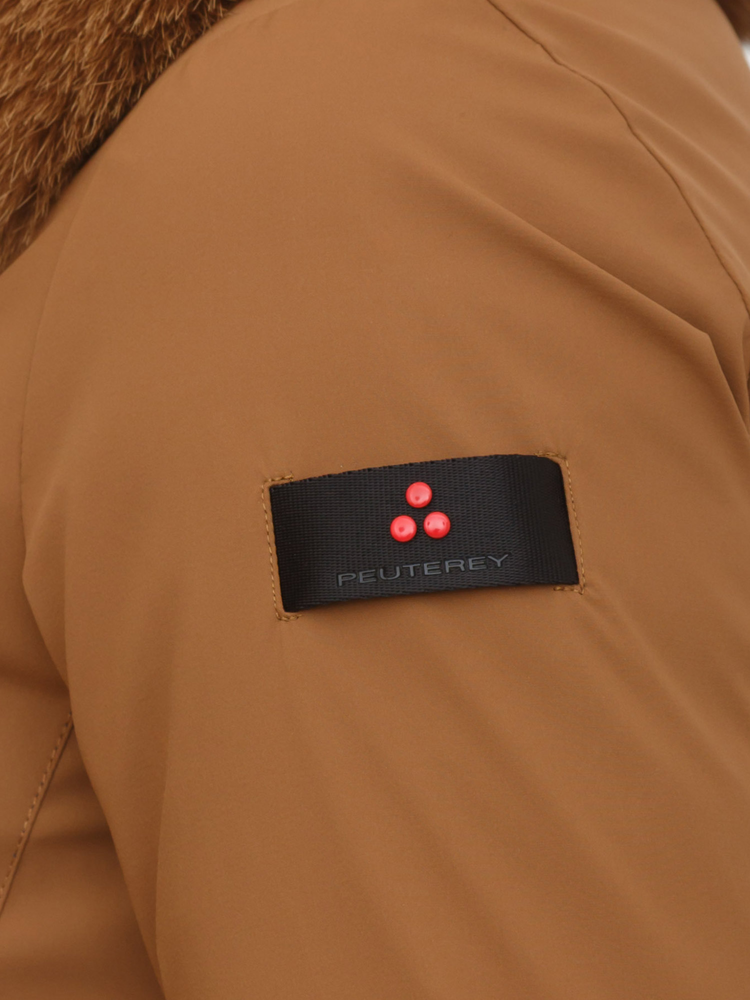Piumino liscio Peuterey in piuma e nylon marrone con collo pelliccia volpe