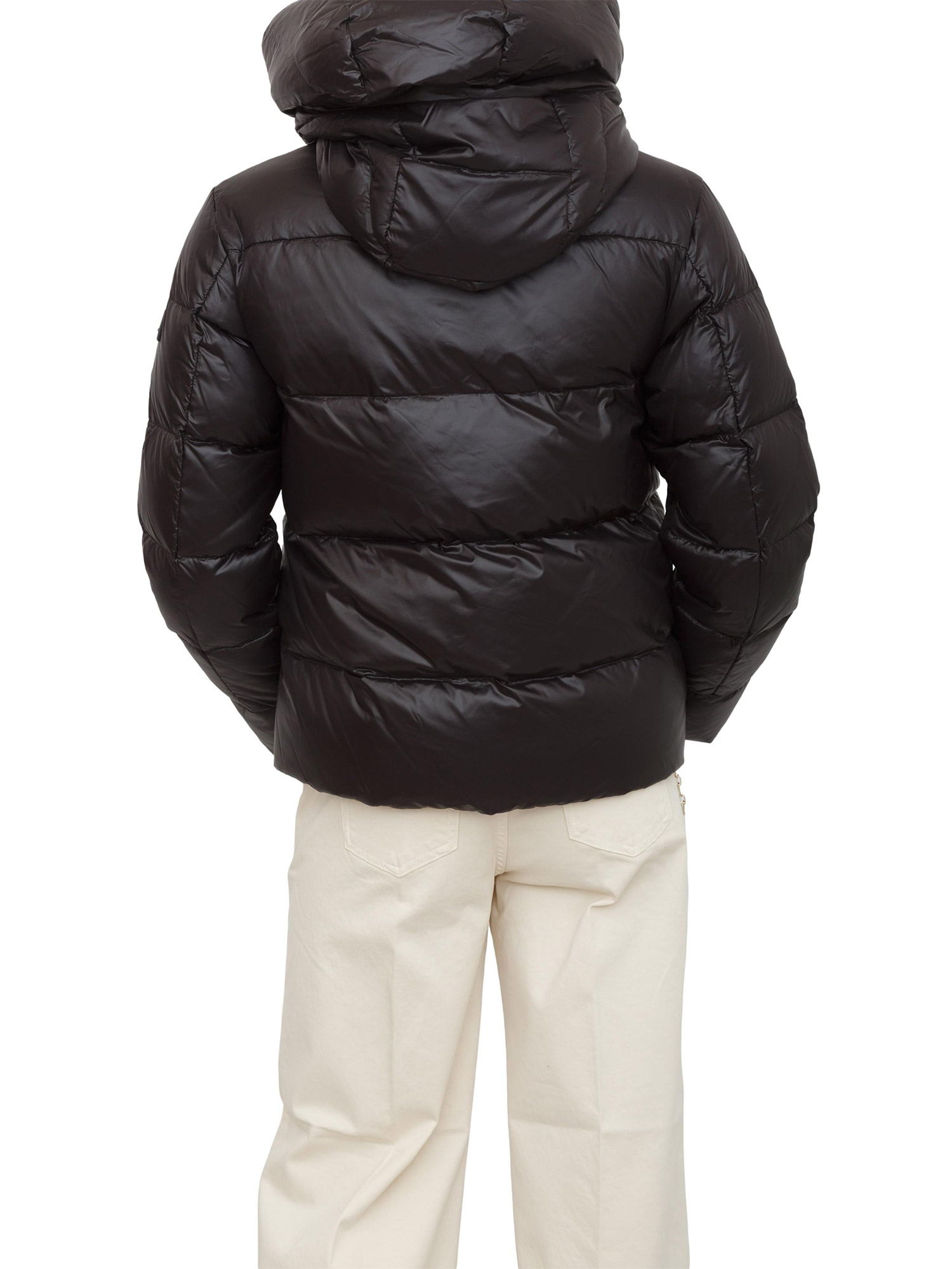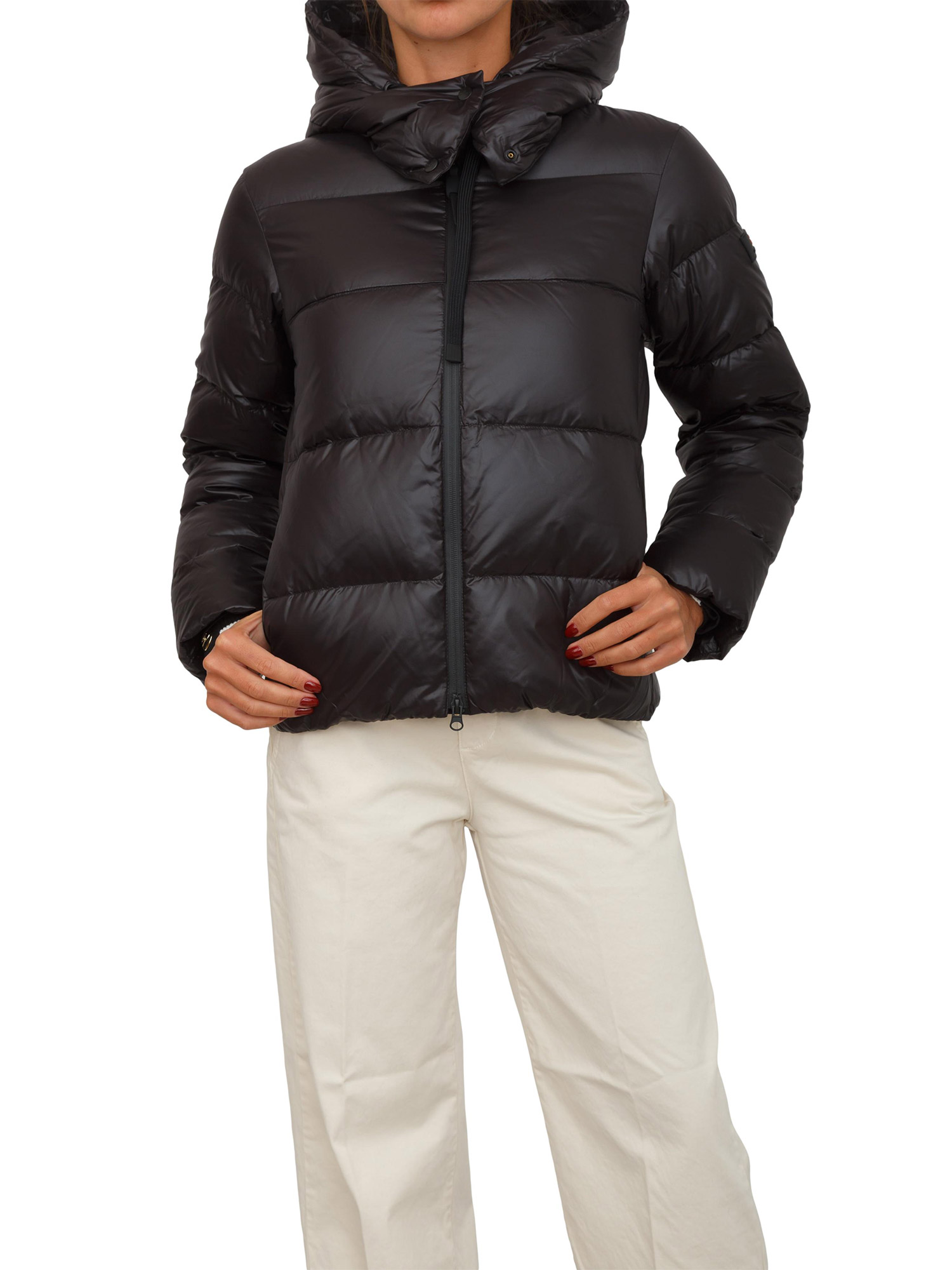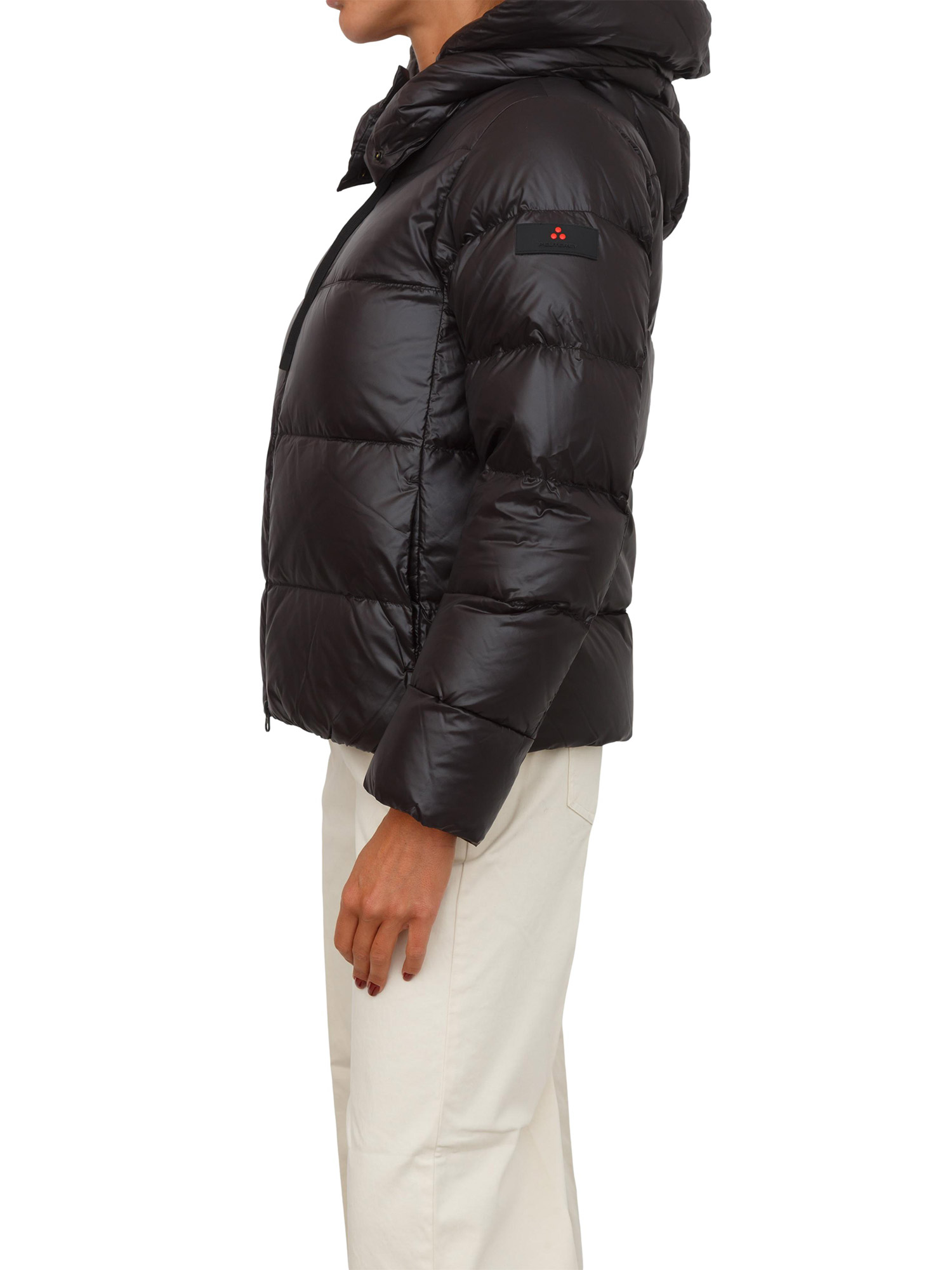 Brand: PEUTEREYPiumino Peuterey donna realizzato in nylon lucido idrorepellente con ampie trapunte e imbottitura in piuma naturale. Dotato di doppio cappuccio, uno interno fisso e uno esterno removibile e collo alto con bottoni. Full zip a doppio cursore e ampie tasche laterali completano questo capo, perfetto per uno stile urban con attitudine outdoor. La modella è alta 1.72 e indossa la taglia 40.