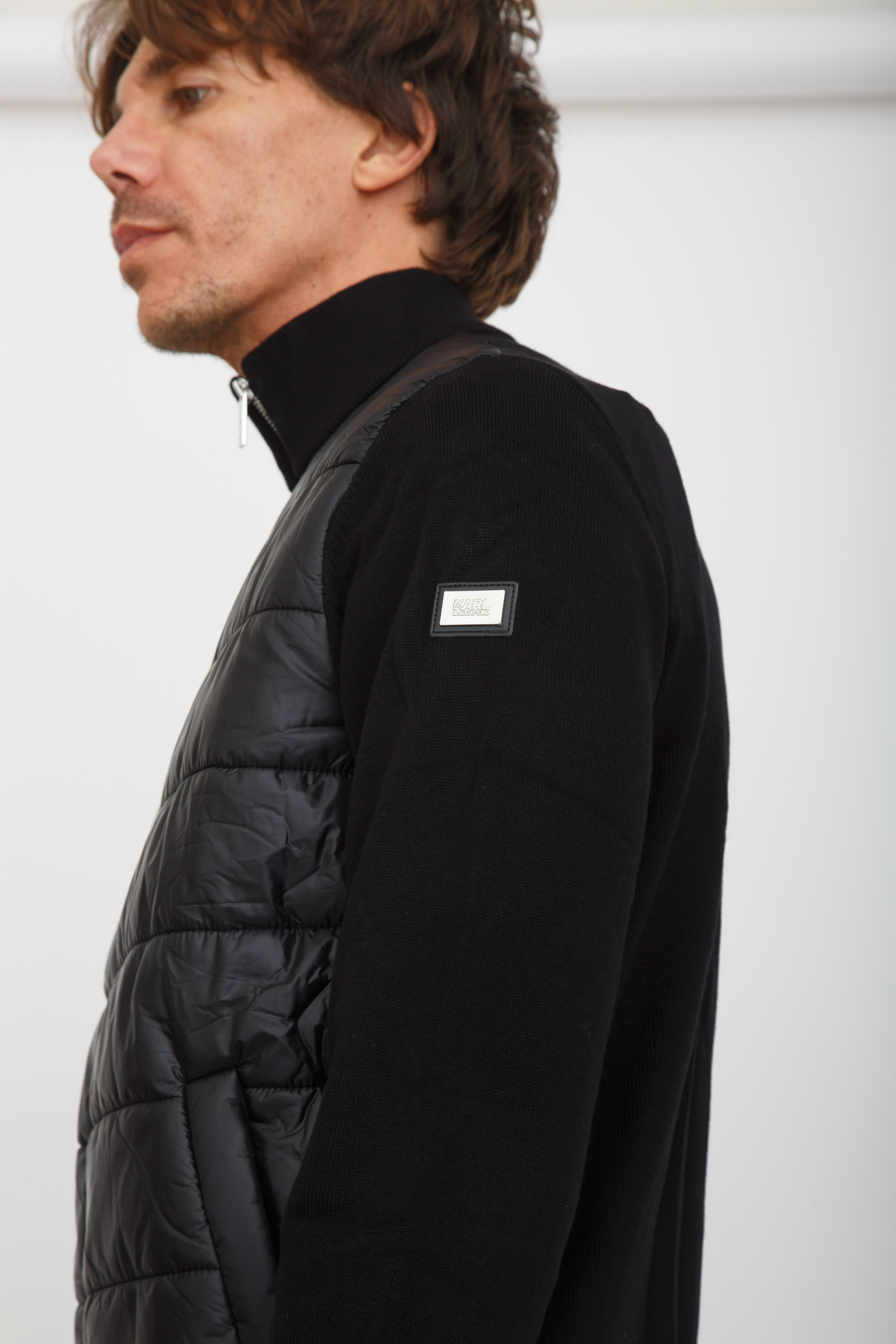 Brand: K.LAGERFELDQuesto piumino uomo Karl Lagerfeld, realizzato con design effetto gilet. Sulle maniche e sulla schiena tessuto misto lana, mentre sul corpo davanti piumino in nylon tecnico leggermente imbottito che offre uno stile senza tempo e un comfort senza pari. Il modello è alto 1.90m e indossa la taglia L.