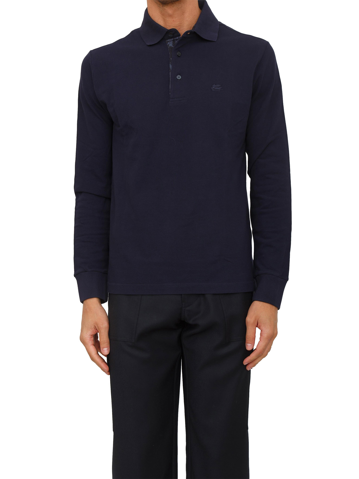Brand: ETROPolo a maniche lunghe Etro uomo realizzata in piquet di cotone con vestibilità regular. Presenta un ricamo ton sur ton con Pegaso e monogram ETRO sul petto e colletto a punta. Arricchito da inserto stampa floreale su chiusura bottoni. Il modello è alto 1.90m e indossa la taglia M.