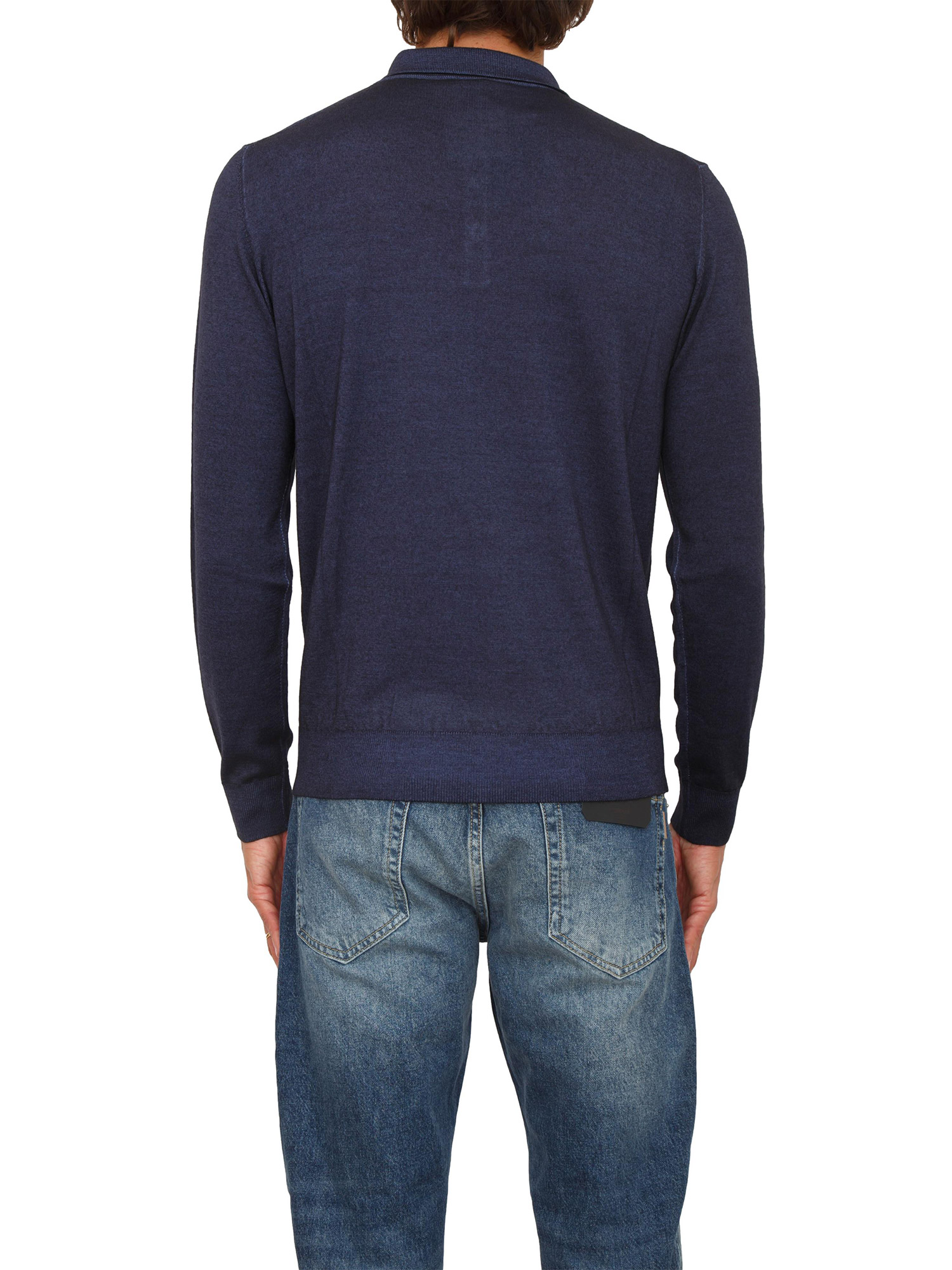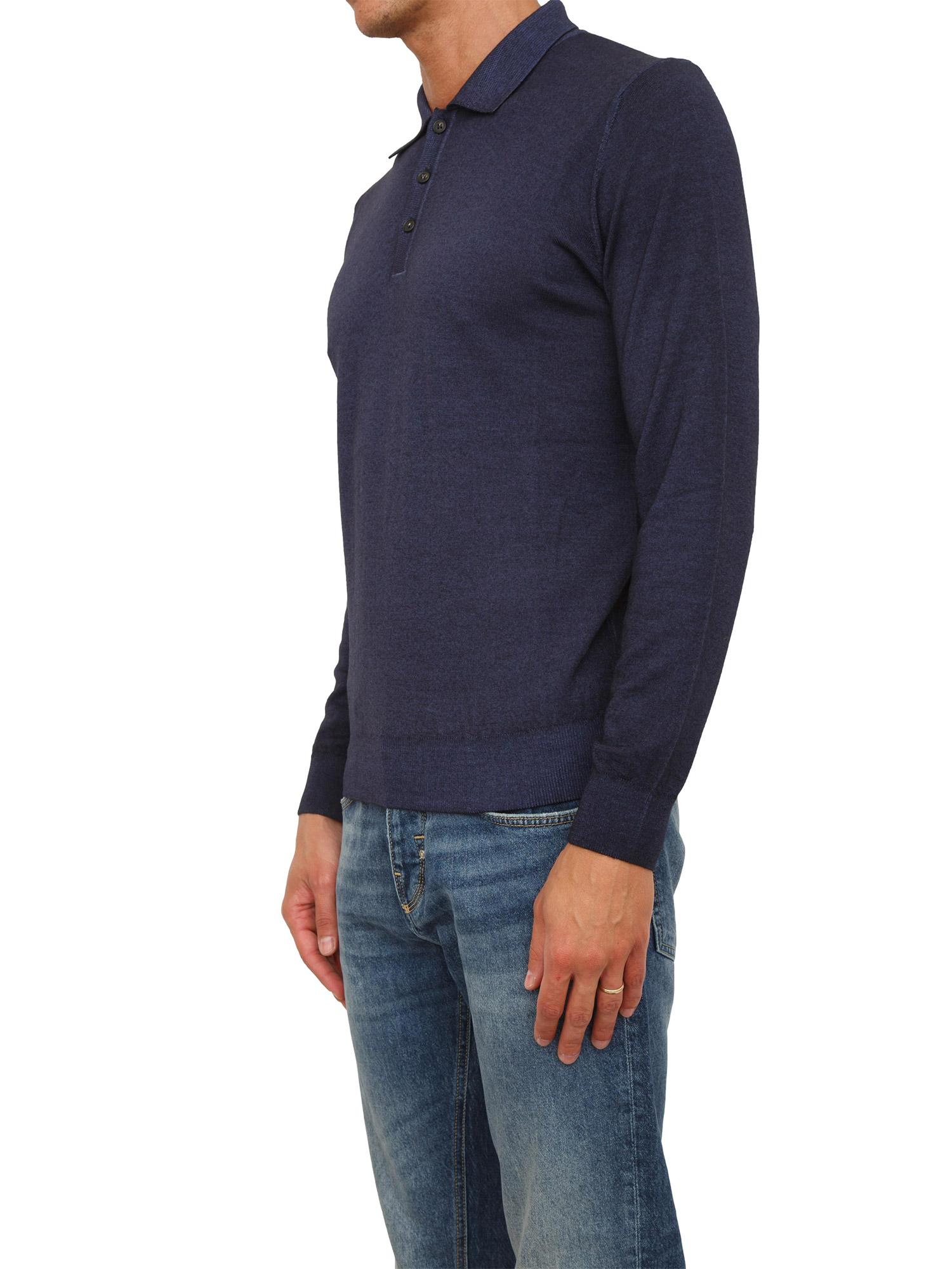 Polo maglia manica lunga Aiace Galassi in pura lana blu