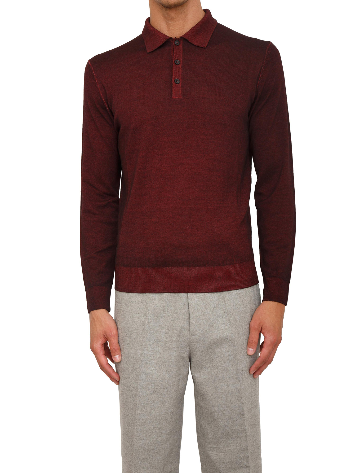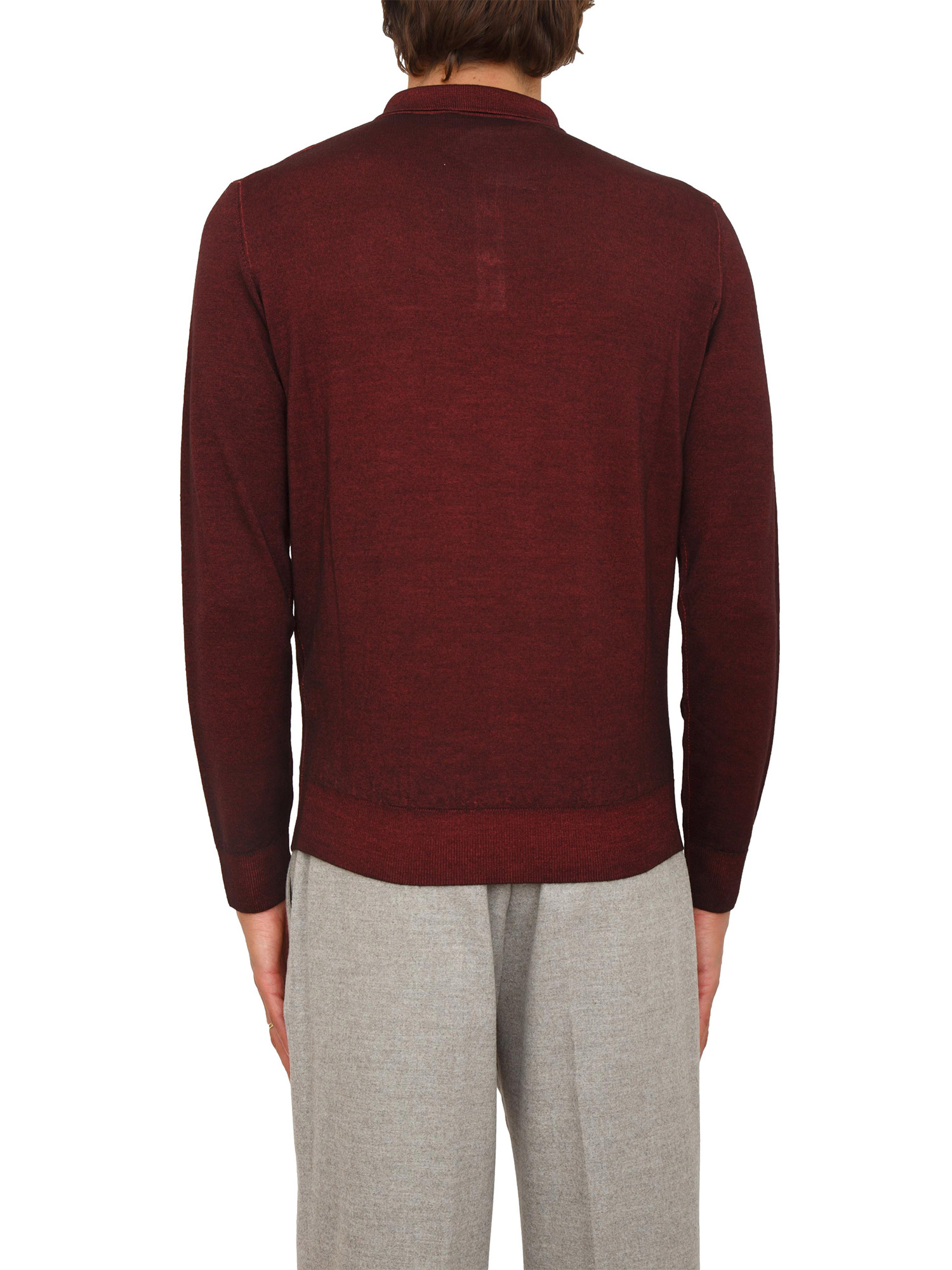 Polo maglia manica lunga Aiace Galassi in pura lana bordeaux