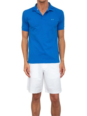 Polo in piquet di cotone stretch, maniche corte, chiusura con bottoni e logo SUN68 ricamato sul petto.